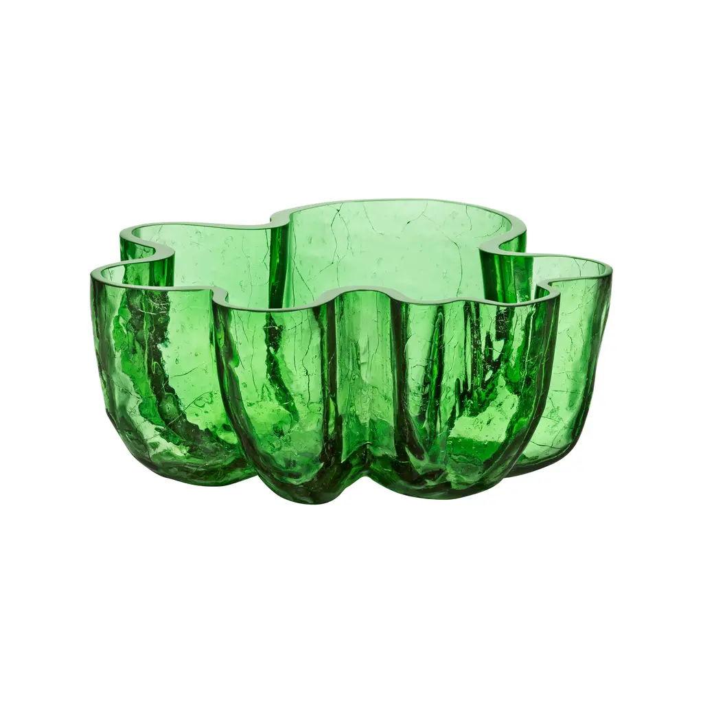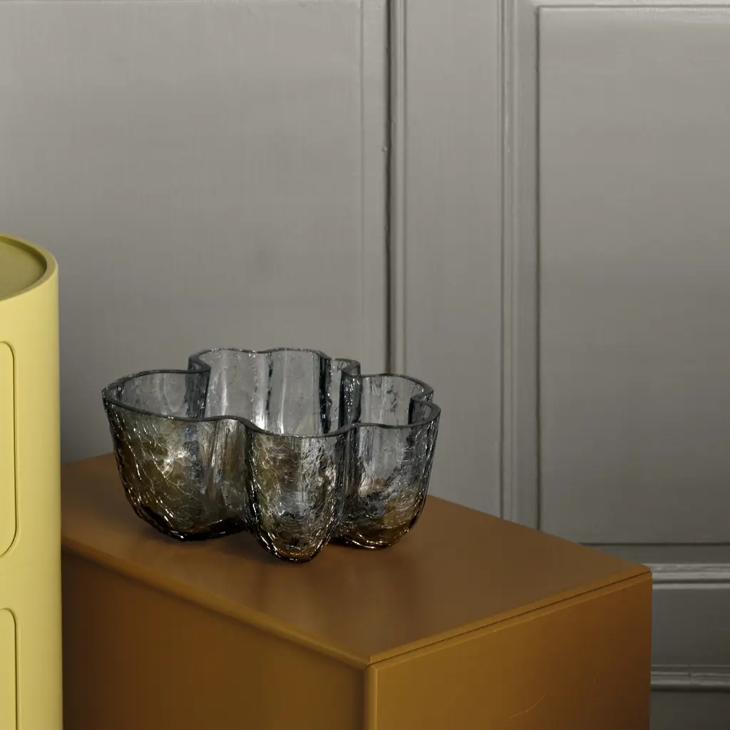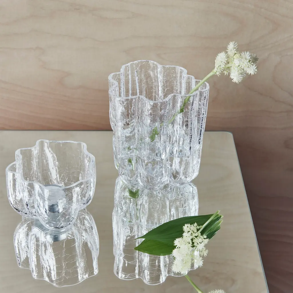 Crackle is a mouth-blown Collection with a distinctive, organic look. It is made using a technique in which hot glass is cooled in ice-cold water. The meeting of hot and cold produces a crackled surface, hence the name, Crackle – reminding us of the incredible power possessed by fire and water as natural elements. The pieces in this collection were meant to be used: for serving, for storage, for spending time with friends and family. Each piece in the collection can stand alone as a solo player, and they all work well together as a group. The Crackle collection celebrates cracks, beautifully preserved in glass. Like a moment paused in time, when the frozen ice has just cracked. “I have revealed the expressive shape of the clay. The convergence of hot glass and cold water creates a crackled finish. I wanted to create a surface reminiscent of frozen, crusted ice. A crunchy, crackling feel. The technique is old, but I use it in my own personal way. The Crackle serious is mouthblown in Kosta.” – Asa Jungnelius. Features