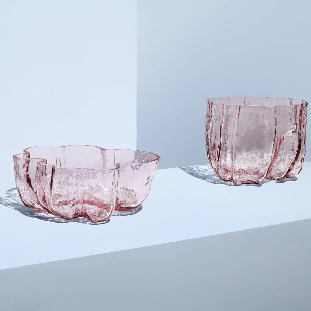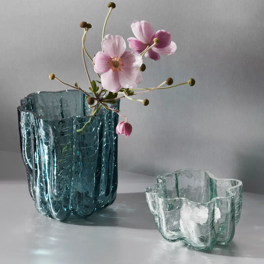 Crackle is a mouth-blown Collection with a distinctive, organic look. It is made using a technique in which hot glass is cooled in ice-cold water. The meeting of hot and cold produces a crackled surface, hence the name, Crackle – reminding us of the incredible power possessed by fire and water as natural elements. The pieces in this collection were meant to be used: for serving, for storage, for spending time with friends and family. Each piece in the collection can stand alone as a solo player, and they all work well together as a group. The Crackle collection celebrates cracks, beautifully preserved in glass. Like a moment paused in time, when the frozen ice has just cracked. “I have revealed the expressive shape of the clay. The convergence of hot glass and cold water creates a crackled finish. I wanted to create a surface reminiscent of frozen, crusted ice. A crunchy, crackling feel. The technique is old, but I use it in my own personal way. The Crackle serious is mouthblown in Kosta.” – Asa Jungnelius. Features
