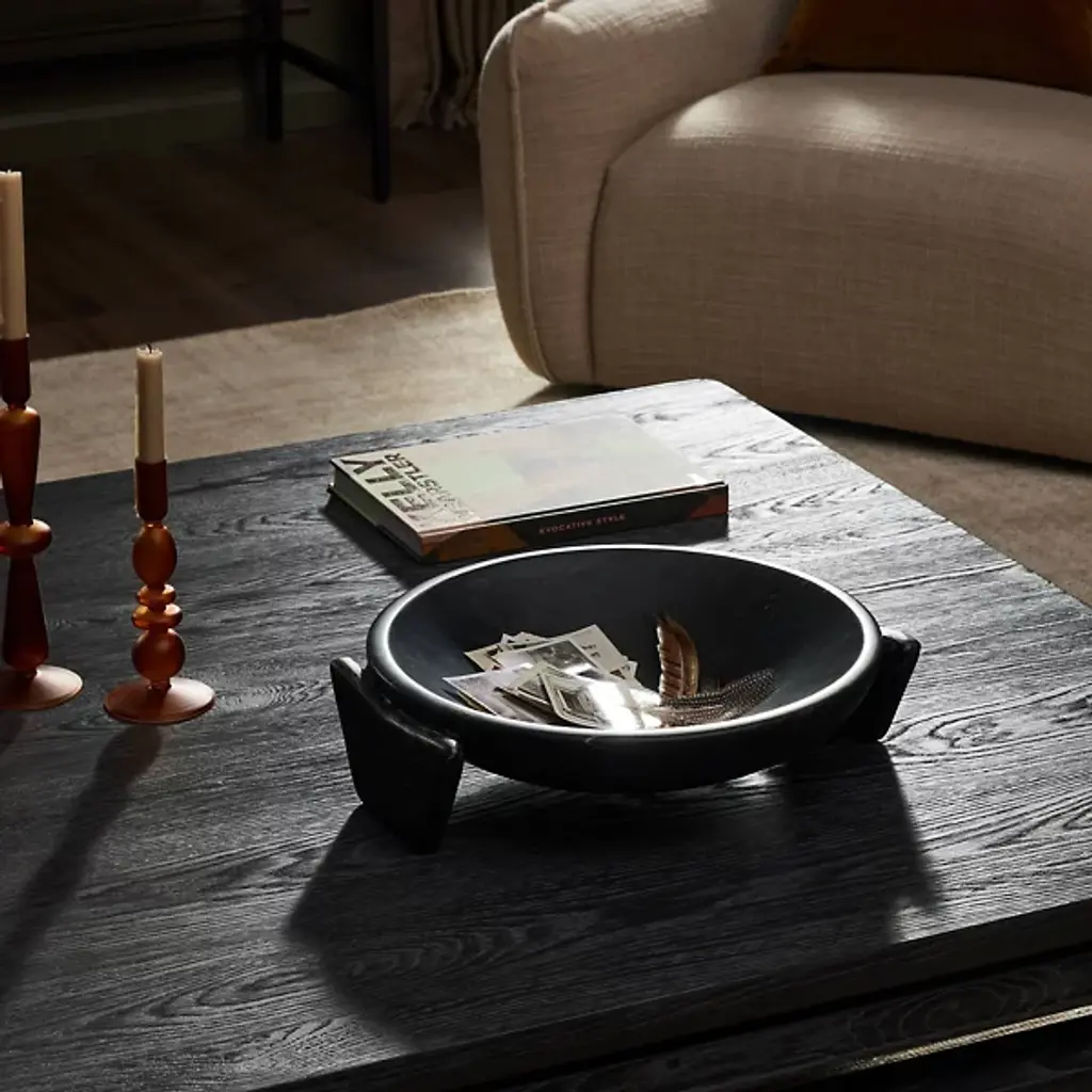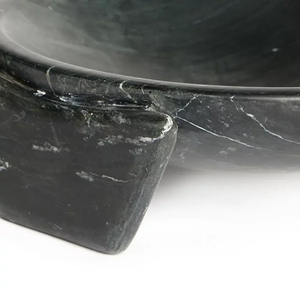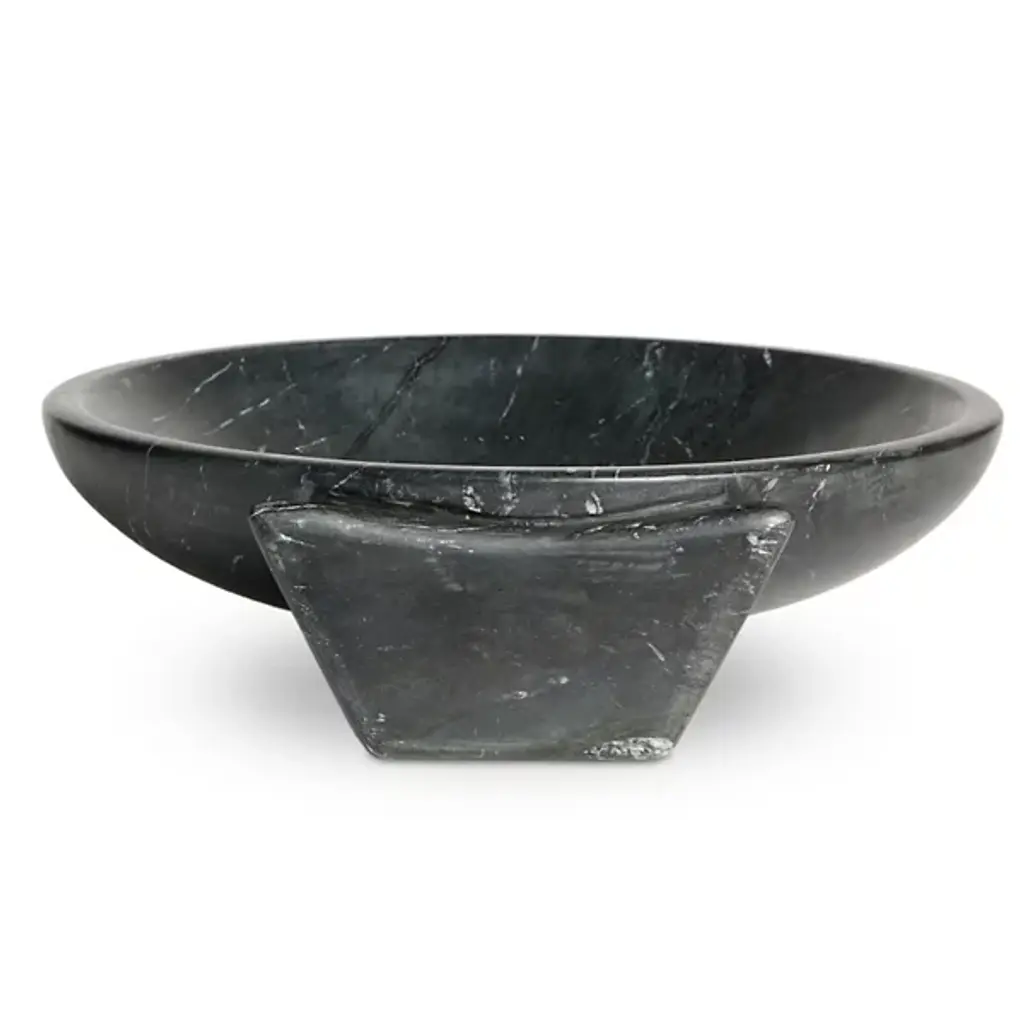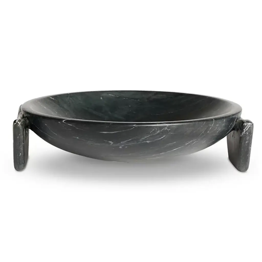 The Cradle Bowl from Four Hands embraces minimalist design with its unique suspended form. Solid marble creates a food-safe vessel that appears to float between two soft-edged legs. The gentle arc of the bowl contrasts with the angular supports, creating a dynamic relationship between curves and straight lines. This natural stone piece serves as both a functional server and a decorative accent. Perfect for holding fruits and salads or standing empty as an artistic centerpiece on any tabletop or counter.