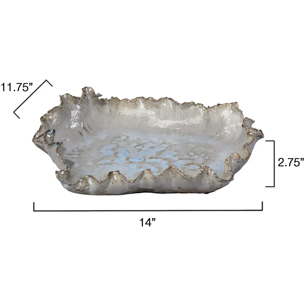 Inspired by the magnificence and mystery of the oceans countless creatures, these decidedly organic trays evoke the awe we feel for the creatures themselves. Handcrafted of the finest ceramic and finished in a hand-applied gray reactive glaze, no two will be identical.