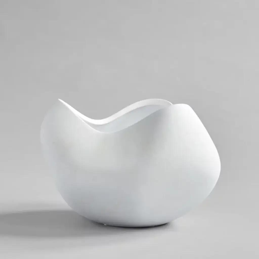 The Curve Bowl from 101 Copenhagen celebrates the organic beauty of handcrafted ceramics. Made from fiber concrete, it was designed by Kristian Sofus Hansen and Tommy Hyldahl to feature an intentionally uneven shape and surface, giving each vase a unique, artisanal quality. Its curving, folded form makes it perfect for versatile storage or as a standalone decorative design, while each piece is hand-glazed for even more unique character.