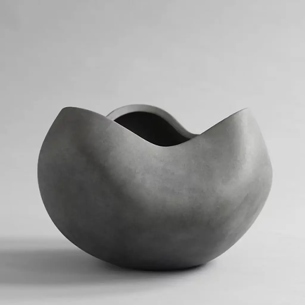 The Curve Bowl from 101 Copenhagen celebrates the organic beauty of handcrafted ceramics. Made from fiber concrete, it was designed by Kristian Sofus Hansen and Tommy Hyldahl to feature an intentionally uneven shape and surface, giving each vase a unique, artisanal quality. Its curving, folded form makes it perfect for versatile storage or as a standalone decorative design, while each piece is hand-glazed for even more unique character.