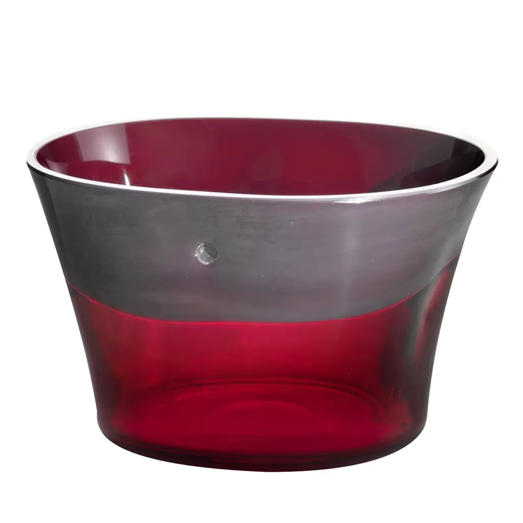 A deliberately irregular silhouette, seemingly marked by slight dents, characterizes the Dandy Collection to which this precious small Murano glass bowl belongs. Deftly mouth-blown and finished by hand, it allows for enjoying ice cream while admiring the vibrancy of its green tone only contrasted by a wavy gray band at the top. Different color options are available.