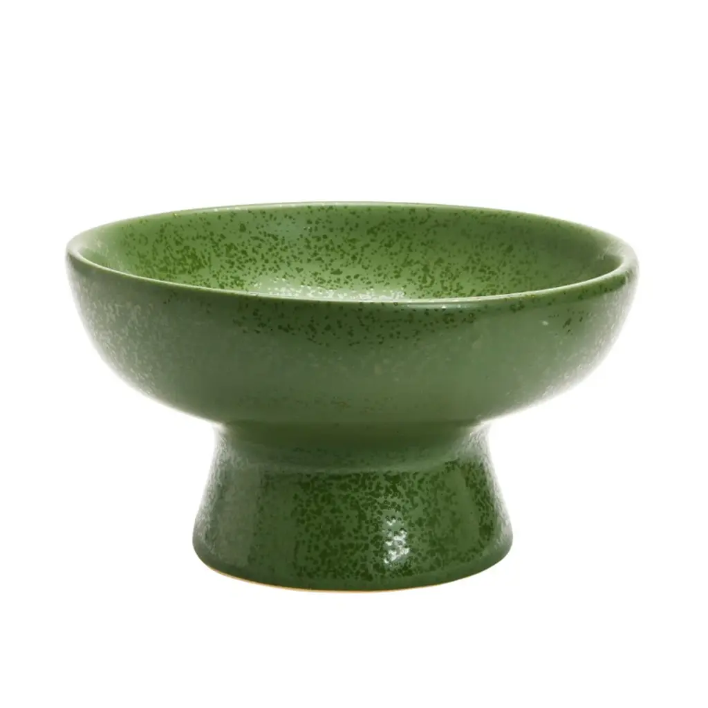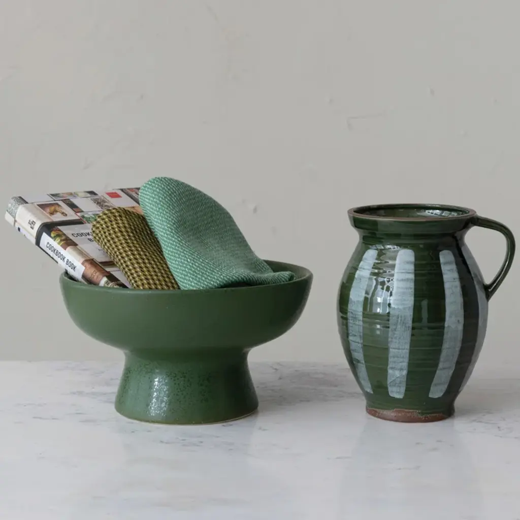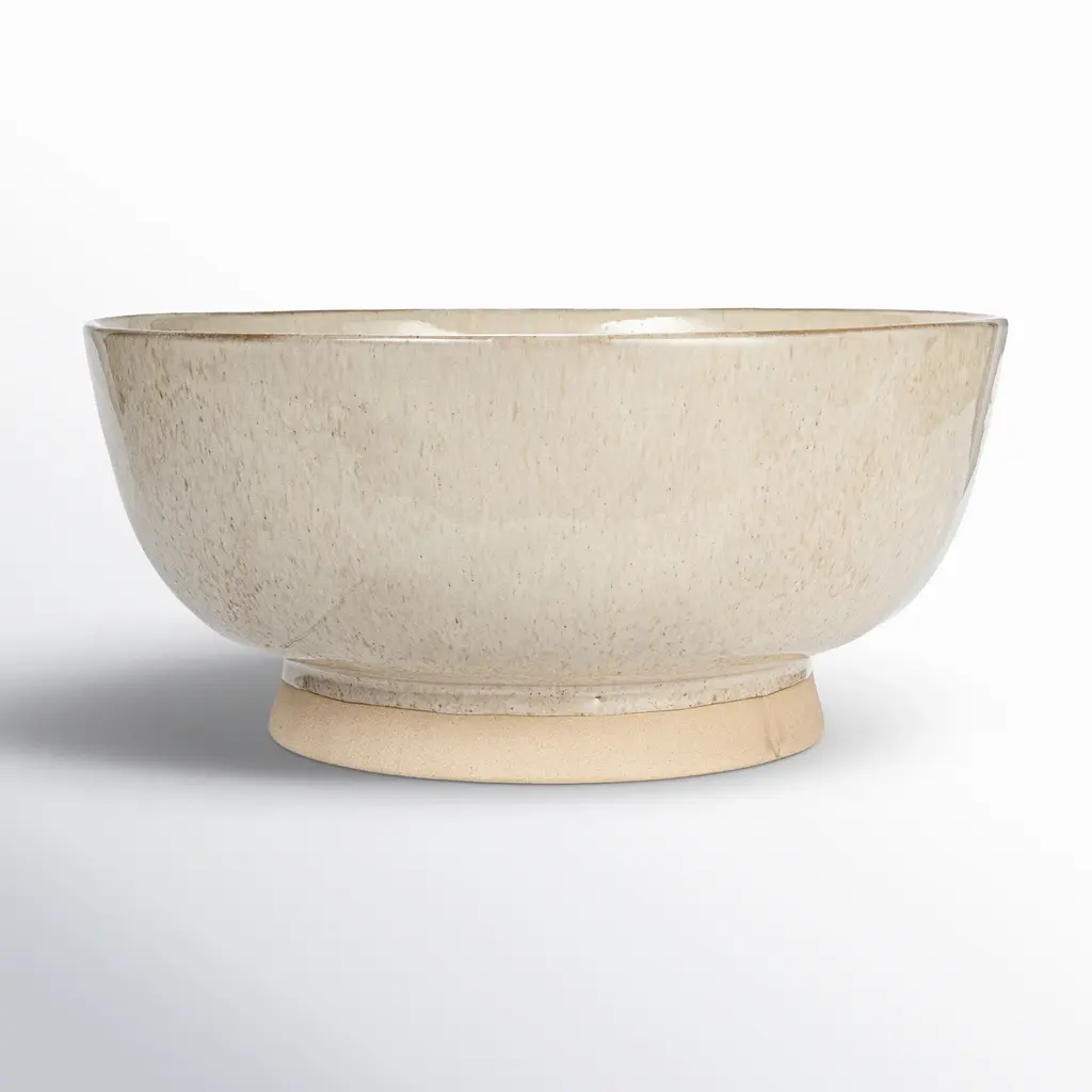 This contemporary stoneware footed bowl showcases a naturally variating reactive glaze; 100% Stoneware; 12.75" L x 12.75" W x 7.25" H.