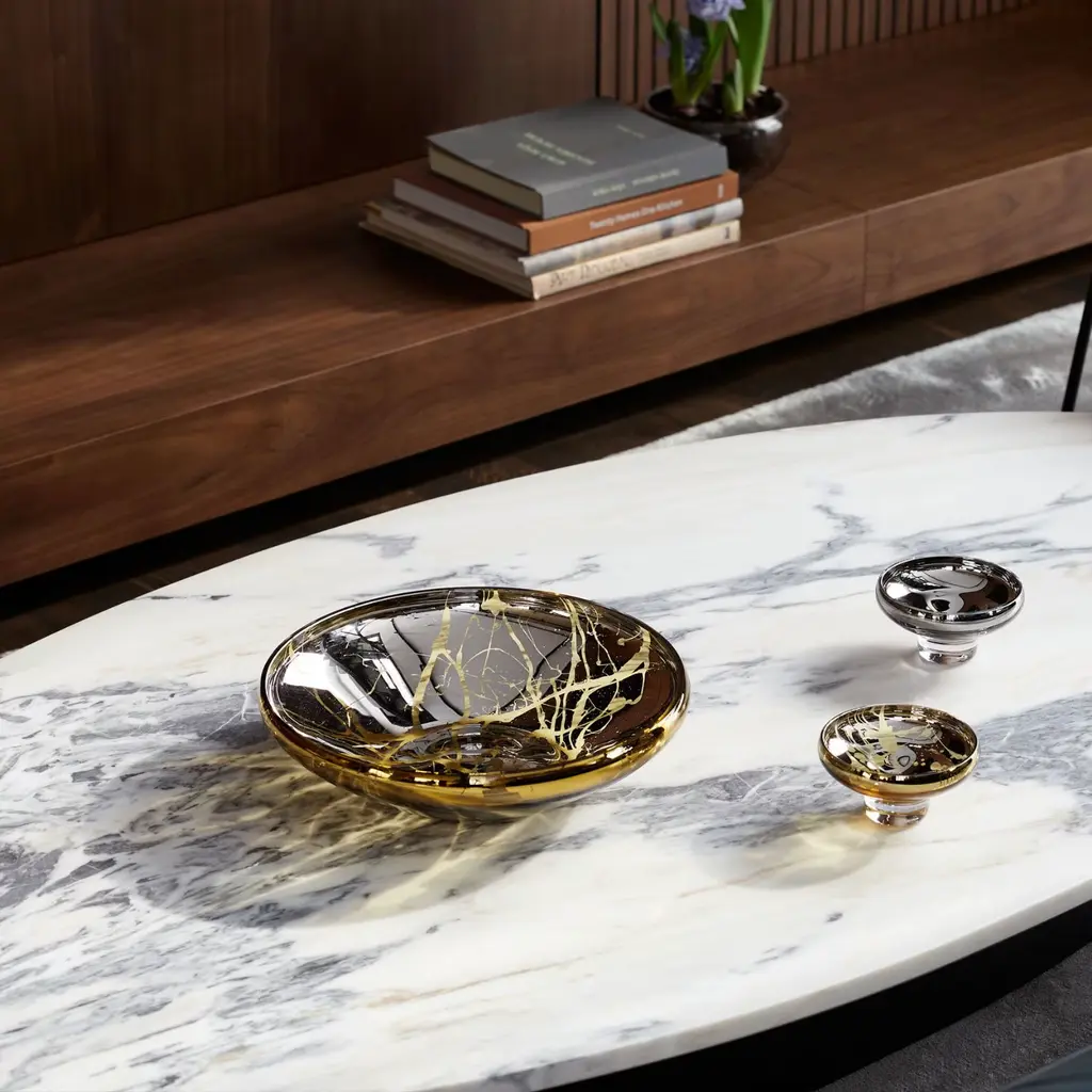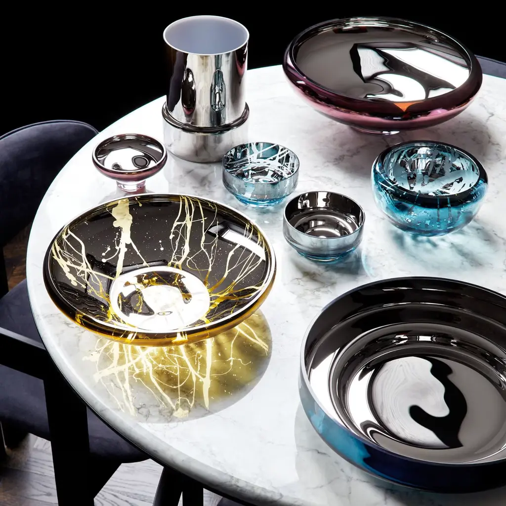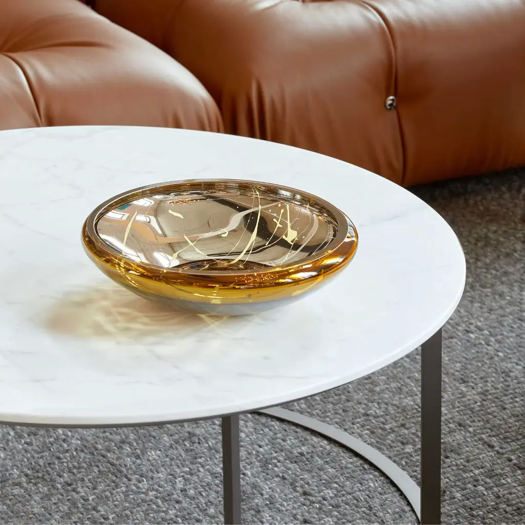 With its hand-applied splashed effect, the Deco Flat Splashed Amber Bowl is a standout expression of the Deco collection’s artistry. Featuring an amber exterior and a mirror-splashed interior, this bowl doubles as both a decorative artwork and a functional item—perfect for those who appreciate accented glass or are seeking a distinctive gift. Its elegant shape and captivating pattern offer a fresh perspective on luxury décor.