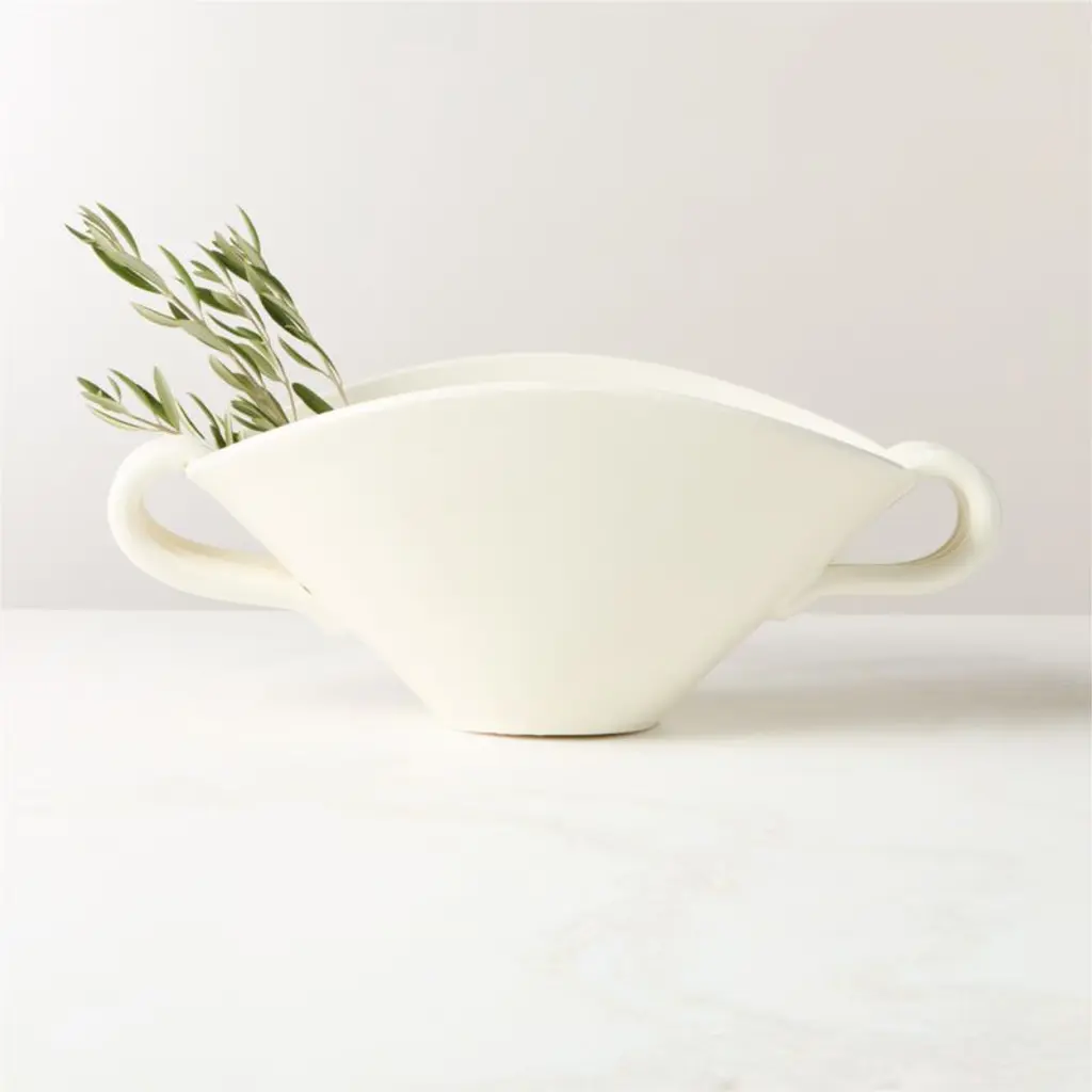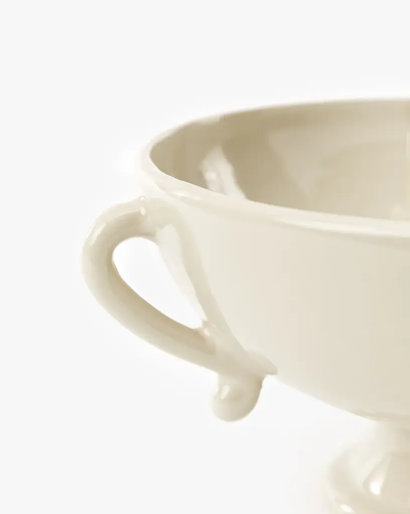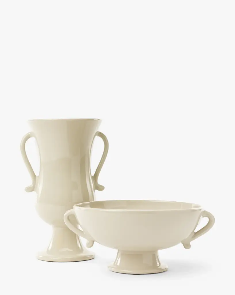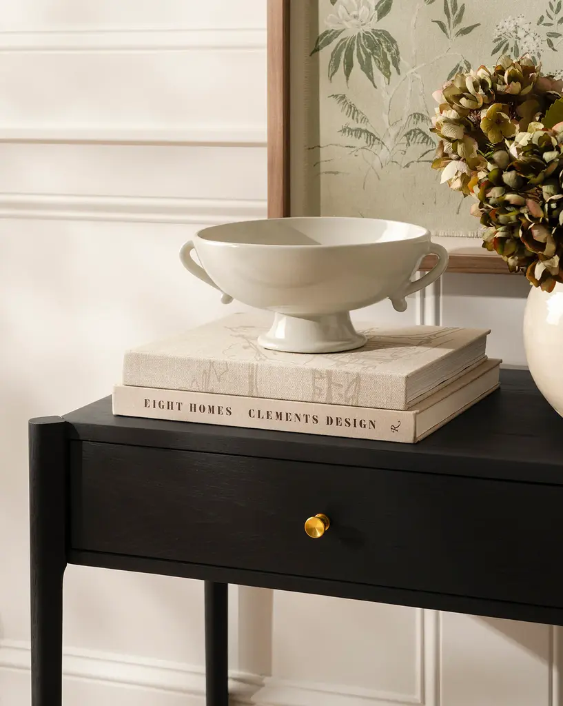 Graceful and timeless, the Delphine Footed Bowl combines classic form with everyday versatility. Its sculpted pedestal base and dual handles create a sense of understated elegance, perfect for displaying fresh fruit, seasonal greenery, or styled as a standalone accent on dining tables, countertops, or consoles.