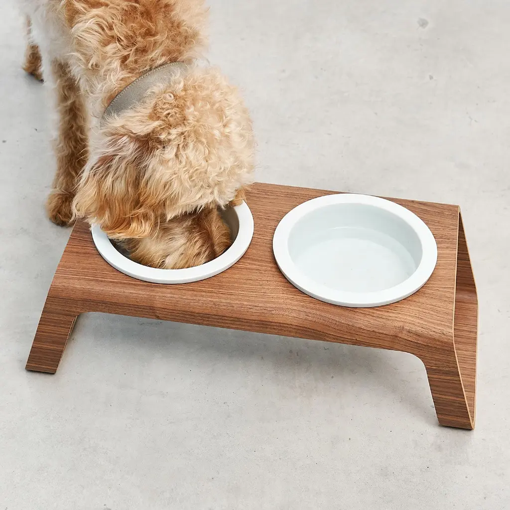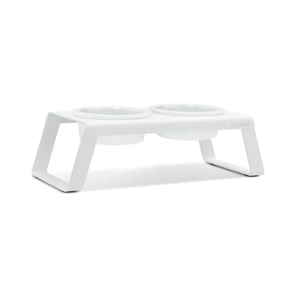 Introduce modern Nordic style to your kitchen with the Desco Dog Feeder from MiaCara. Designed exclusively for MiaCara by Mathias De Ferm, this feeder satisfies both dog and owner with clever details and slip-proof silicone feet. Choose from timeless colors and three sizes, each featuring two high-quality, robust porcelain bowls. Highlights