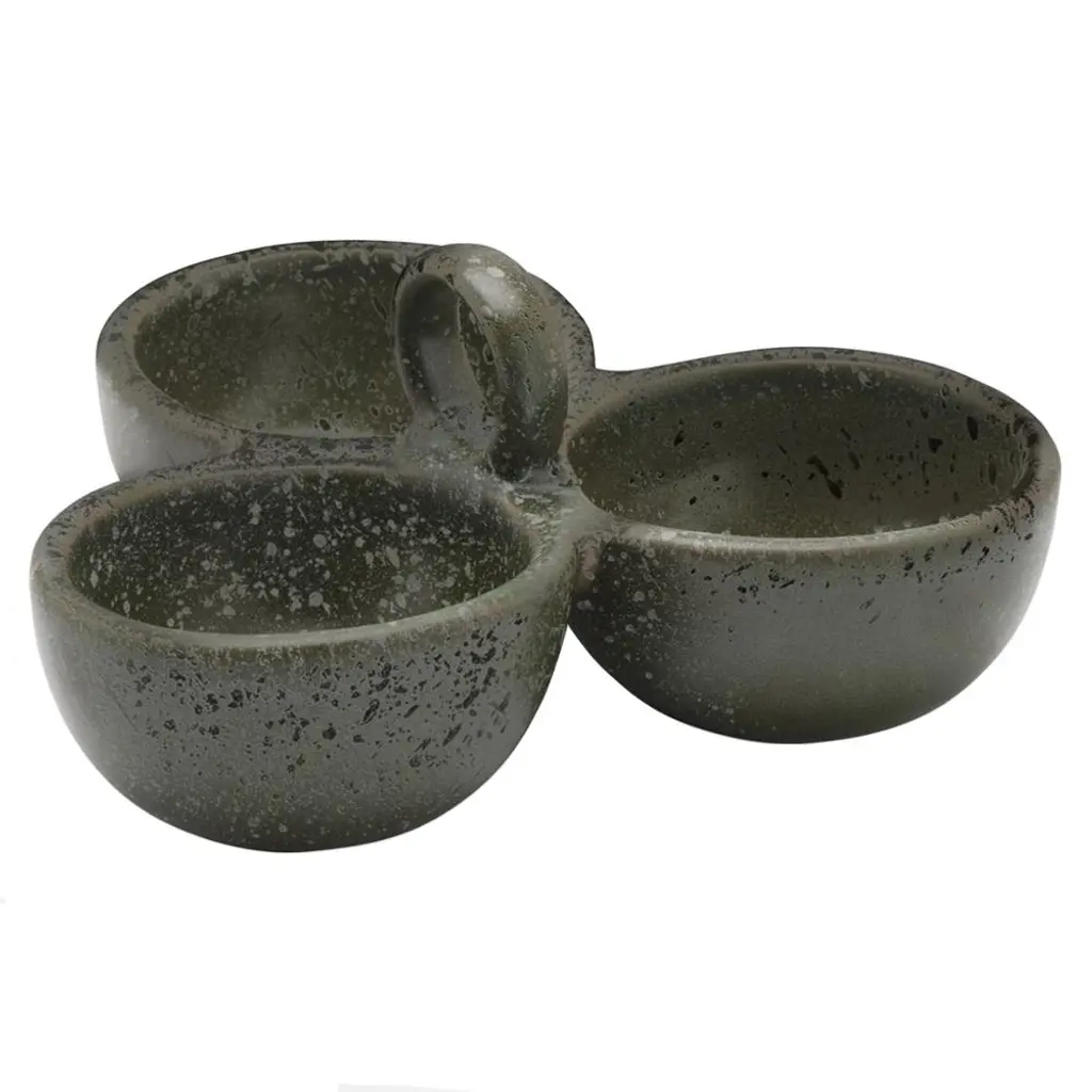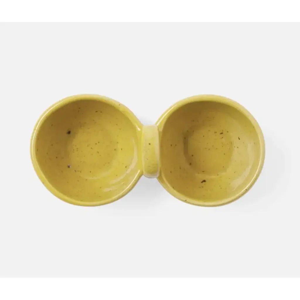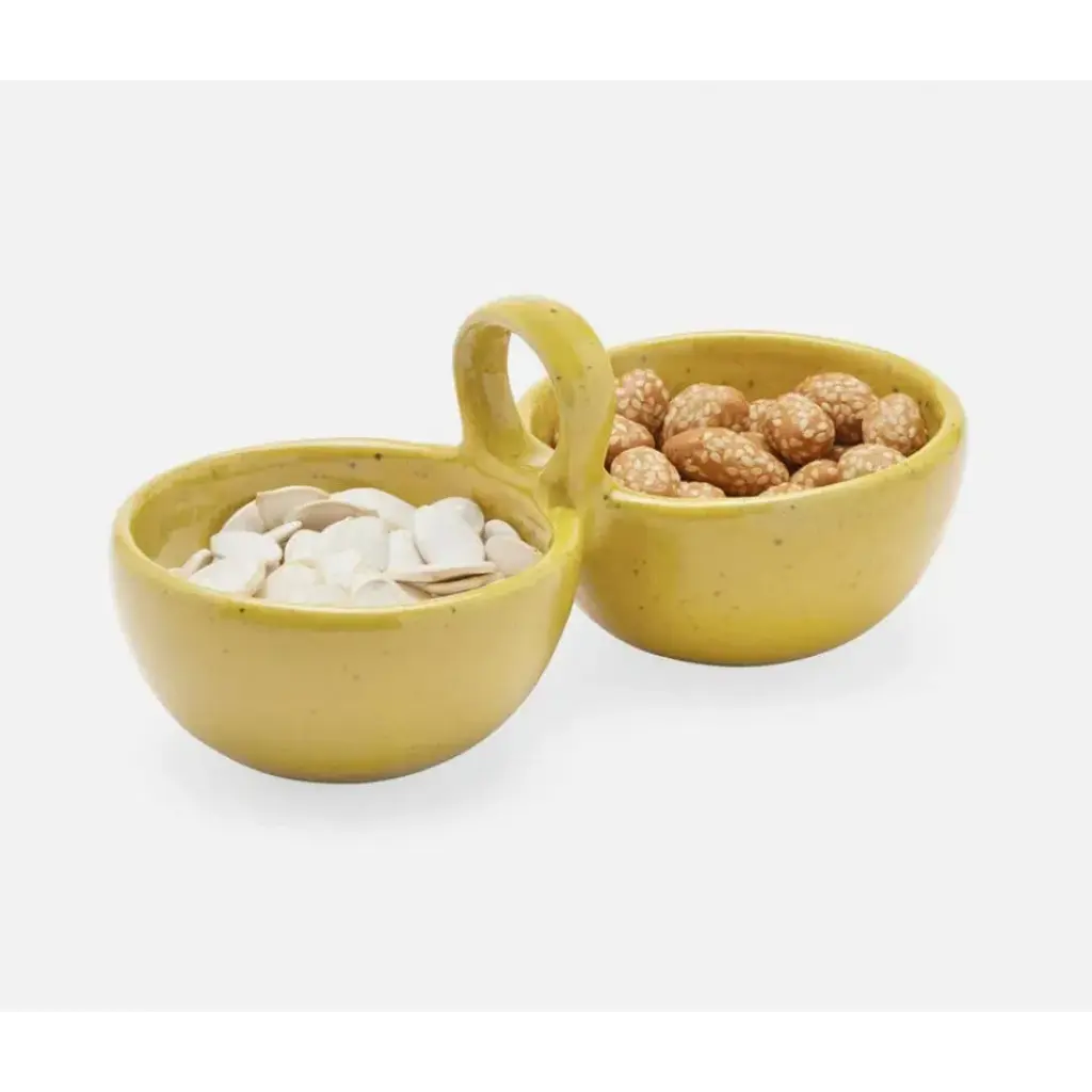 Our Desmond nut dishes pair sleek stoneware with ingenious design: a small ring hovering above either double or triple bowl design for easy carrying from room to room. Available in Midnight Teal, Gray Salt, White Salt Glaze, or Chartreuse Salt Glaze. Blue Pheasant's products are handmade with care by artisans using natural materials. They are not mass produced, so variation between products should be expected, and this is why we love them! It is these irregularities that makes Blue Pheasant what it is—a special brand whose collections are distinctly handmade, full of charm and originality you’ll never find in machine-made products.