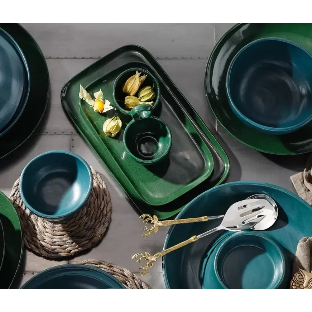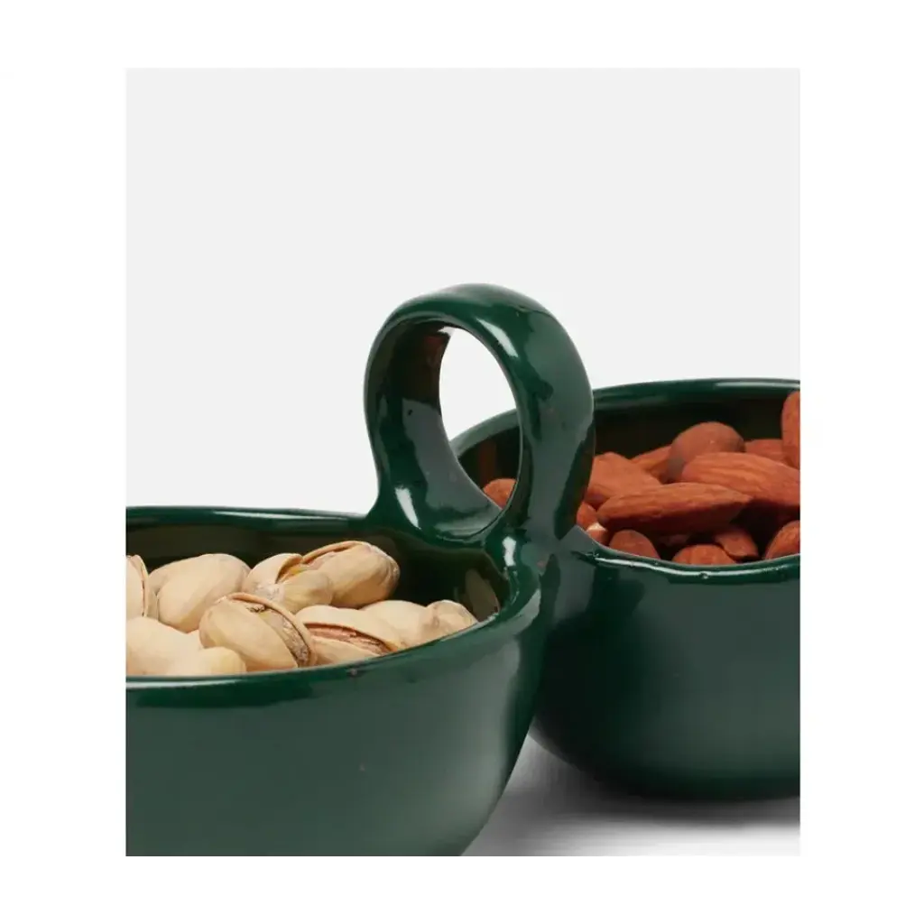 Desmond Dark Green Salt Glaze, Snack Bowl, Stoneware, Double, Pack Of 2