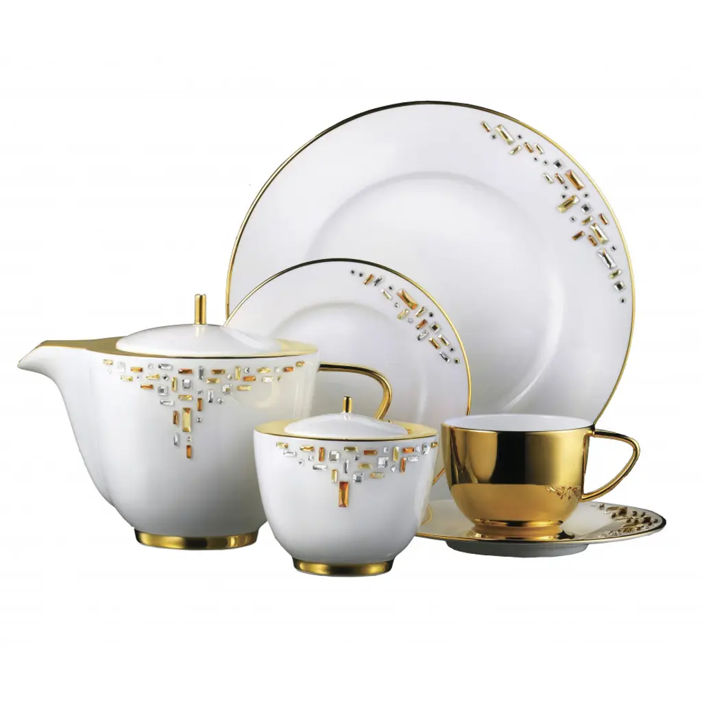 Inspired by the Roman goddess of the moon, Diana dinnerware glows with power and beauty. Bathed in a clear moonlit glow, each graceful plate is edged in hand-painted, 24 kt gold or platinum and adorned with Swarovski crystals. Each gem is like a tiny piece of moonlight. A truly one-of-a-kind statement, Prouna Jewelry china makes a great wedding gift, and is sure to become a prized family heirloom. Prouna Jewelry marries the beauty of fine bone china dinnerware with the sparkle of Swarovski Crystal Elements. Sculptural white china serves as an elegant base to hand-painted designs, gold and platinum ornamentation and dazzling arrays of Swarovski crystals. With several patterns to choose from, each with its own unique story, you're sure to find one you love. The crystals are attached with a special method that is tested dishwasher safe. A true marriage of technology and style, Prouna Jewelry Dinnerware is the height of luxury.