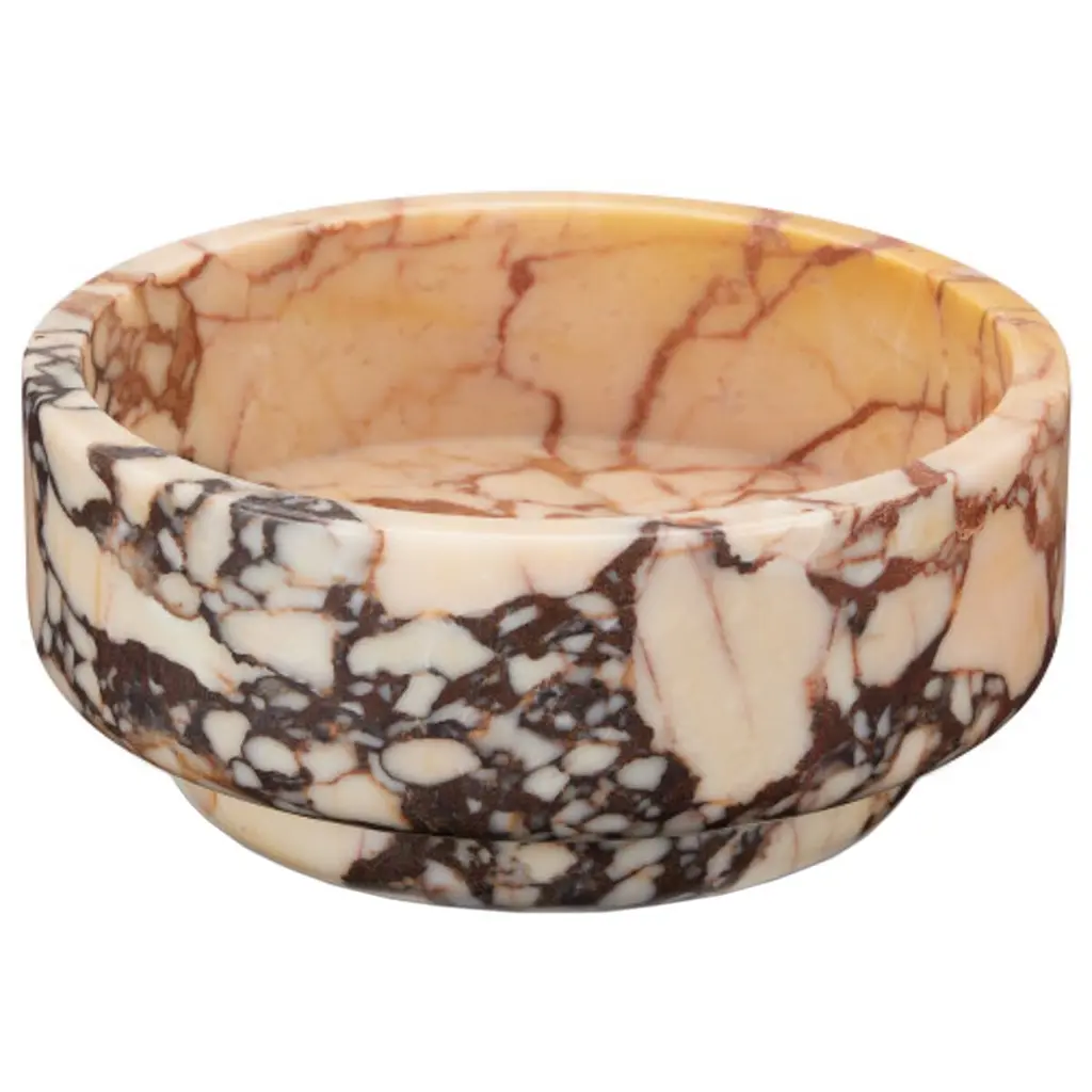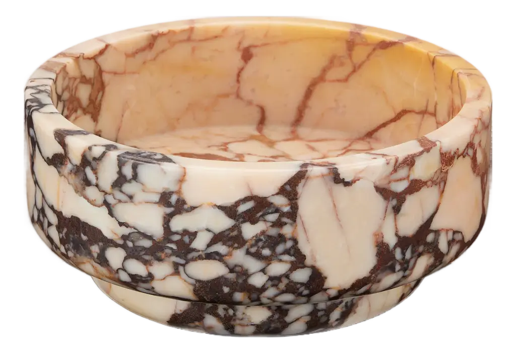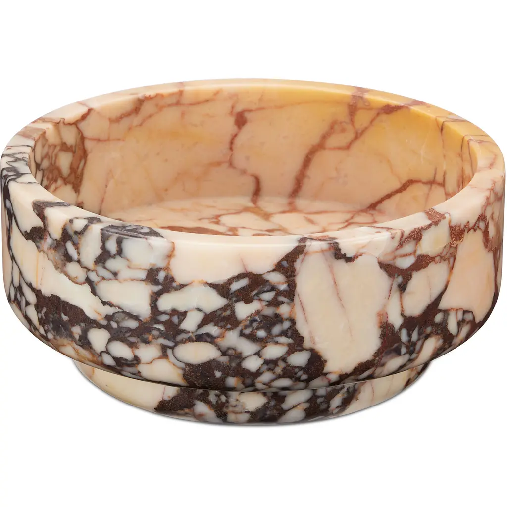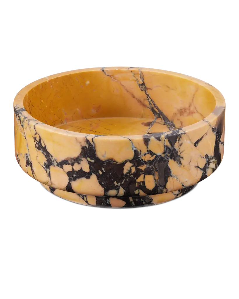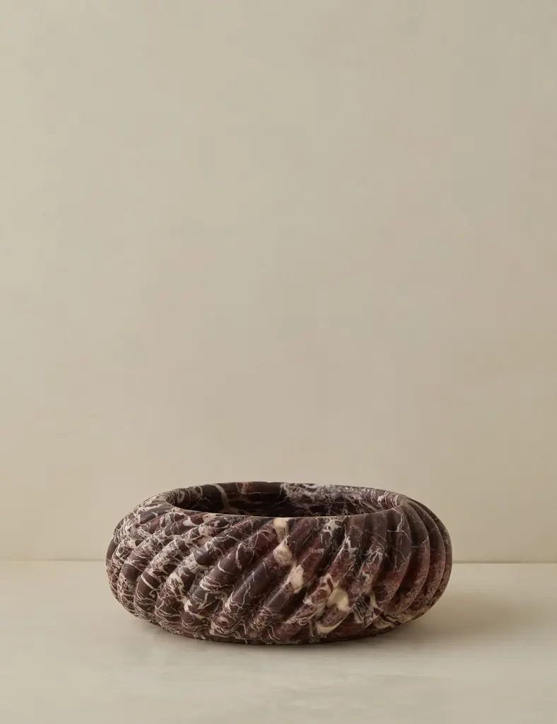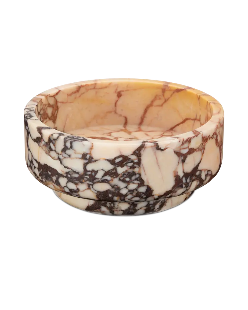Experience the beauty of nature with the Digby Bowl from Currey & Company. Crafted from luxurious Purple Breccia marble, its intricate patterning makes it a one-of-a-kind piece. Perfect for displaying as a focal point or for holding fruits and vegetables, this peach and purple bowl adds a touch of elegance to any setting. Highlights