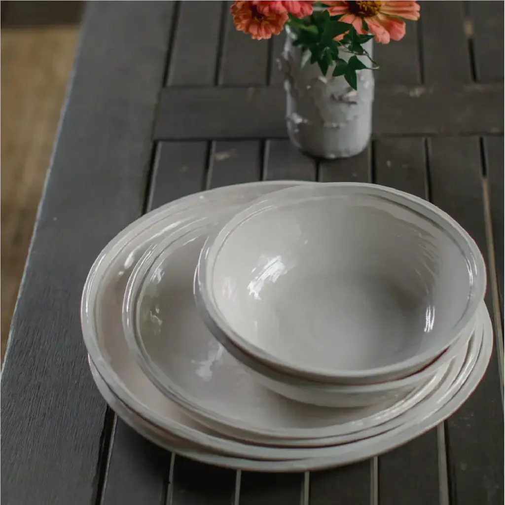 Double Line White Melamine Bowls (Set Of 4)