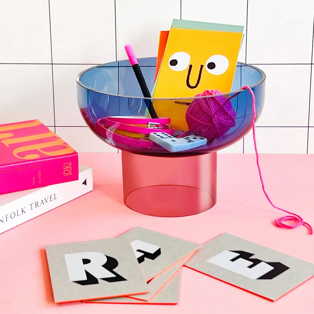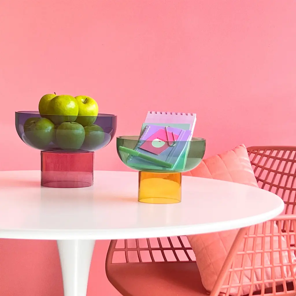 A juxtaposition of a Brutalist silhouette with light, translucent colors, this Glass Fruit Bowl is a truly modern everyday object. Handcrafted from premium soda lime glass—known for its durability and eco-friendliness—in brilliant true colors, this design is composed of a wide bowl and stout base in contrast hues. Each bowl reflects the artisan’s touch, with unique imperfections and variations. Use it to keep your favorite fruit close at hand, as a catchall, or simply display it as a delightful object that combines light with colorplay. Dishwasher-safe.