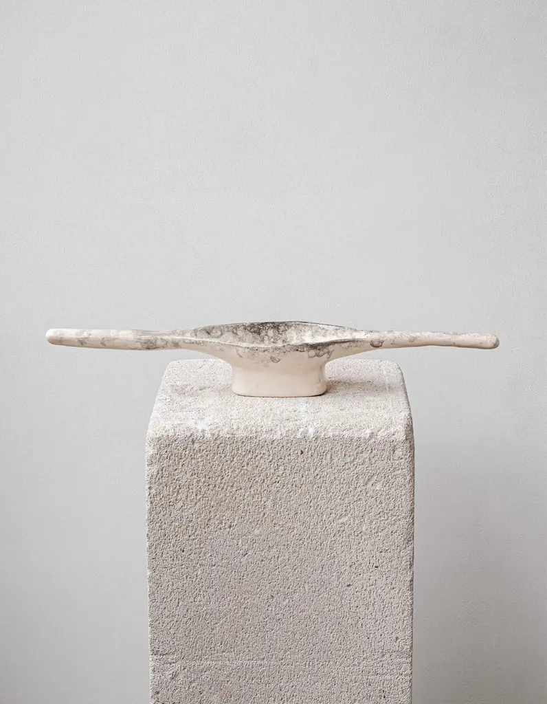 DYKA Drinking Bowl by ZEMNADesigned by Tetiana Krasutska.Dimensions: D 40 x W 40 x H 6 cm. Materials: Clay.Each object in the DYKA collection is unique because it is sculpted by hand from white clay. They are finished using a glaze foaming technique, which creates a texture reminiscent of foam, evoking the fluidity and energy of water, breath, and life itself. Please contact us.We tell stories through shapes, textures, and symbols. And invite you to dialogue with yourself, nature, and the moment.