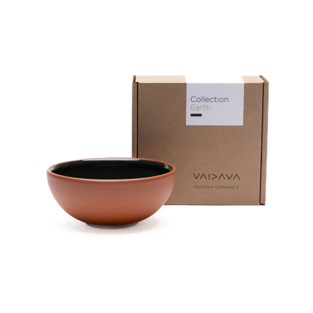 Vaidava's Earth collection combines Latvian ceramic traditions and minimalist Nordic design. Made of Latvian red clay, the Earth bowls have been glazed with colored, lead-free glaze on the inside, and the unglazed outside has simply been polished smooth. The natural tones and soft silhouettes of the Earth collection frame the food beautifully in both daily and festive table settings. The Earth bowl is handmade in Vaidava’s own pottery in Latvia and packed in a recycled cardboard box.