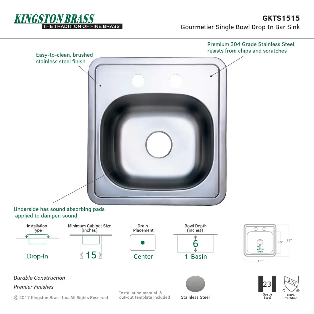 Elkay Quartz Classic sinks have a smooth surface and a visible depth to their structure. They're crafted from natural quartz and come in a range of UV-stable neutral colors in shades of black, brown, gray and white that allow you to add an unexpected pop of color to your space. Whether it's a kitchen sink or a prep, bar or laundry sink, this composite sink has the durability you need to take on tough tasks. Available in ADA depths. • AQUA DIVIDE: Low center divider allows pan handles to extend over center and makes it easy to wash large items, like baking sheets, over both bowls. • UNDERMOUNT INSTALLATION: Sink is installed beneath the countertop creating a seamless appearance between the sink and the countertop. • EASY TO CLEAN & STAIN RESISTANT: Coordinate your sink color with your décor and style; washes clean with soapy water; food and liquid won't stain. • IMPACT, HEAT & SCRATCH RESISTANT: Molded from fine quartz sand to resist banging, chipping and scratches; heat safe up to 535° Fahrenheit. • HYGIENE PROTECTION: Material's ultrafine, nonporous structure means food and liquid won't stick to surface. • QUIET: Material is naturally sound-deadening, minimizing sound and vibration for a quieter time at the sink. • OFFSET DRAIN: Drain placement provides more usable space on the bottom of the sink and in the cabinet below. • CABINET SIZE: Minimum cabinet size for this sink is 36". • 2-IN-1 FAUCET: Get fresh filtered drinking water straight from your kitchen sink with easy single-handle operation
