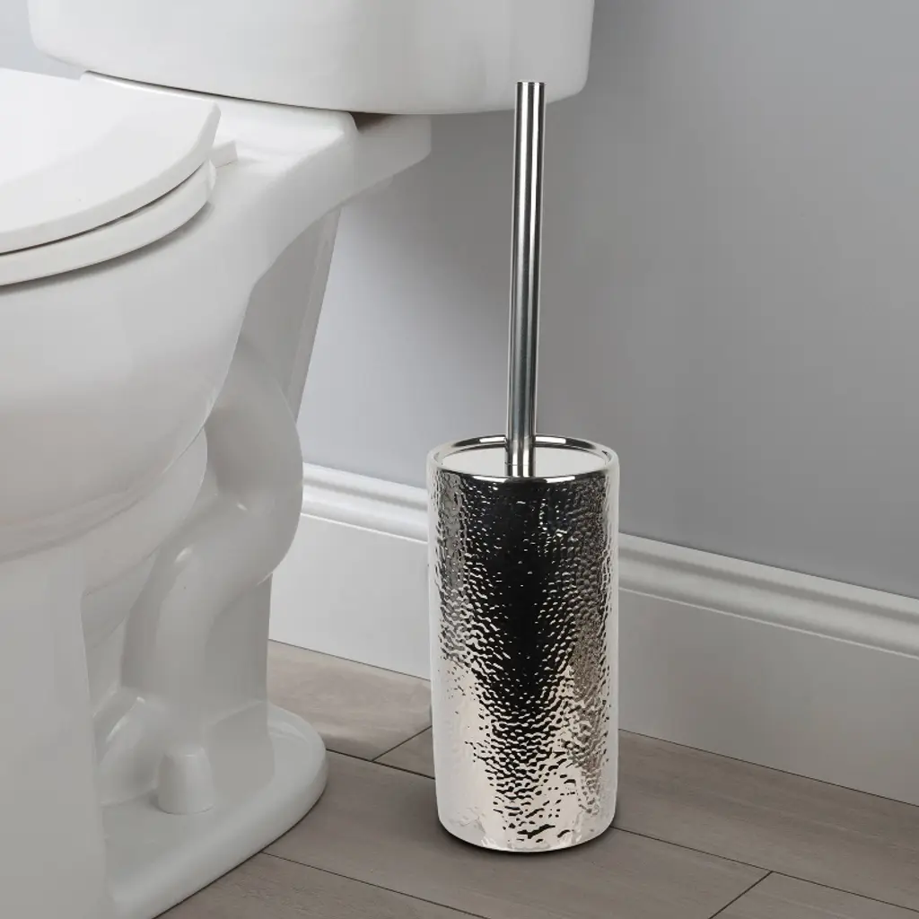 Elle Decor Hammered Metallic Ceramic Toilet Bowl Brush : Microfiber, Machine Washable, Non-slip Backing