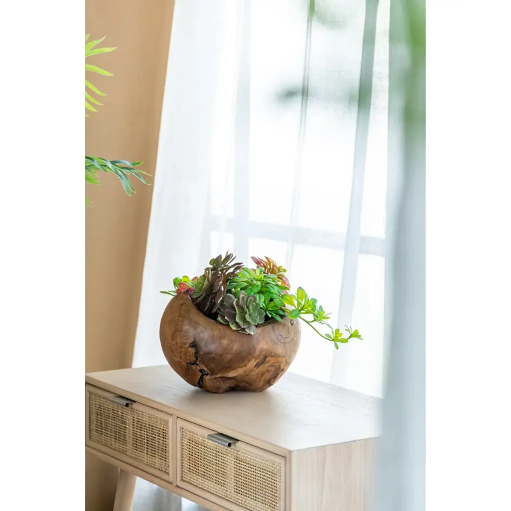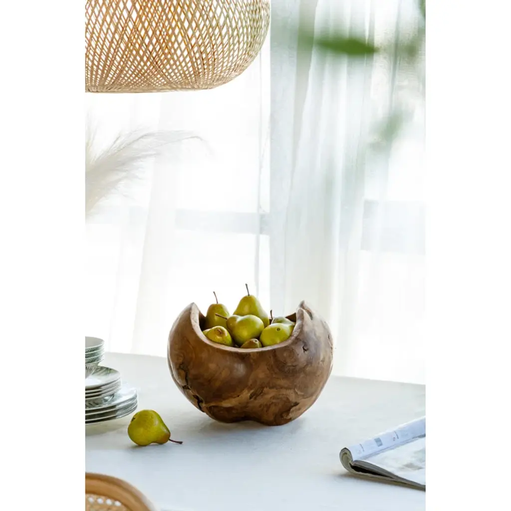 From serving to styling, the teak deep bowl is a great addition to your kitchenware arsenal. Made from rich teak root, this decorative serving bowl can serve a ton of uses. Use it to display fresh fruit, serve food and so much more.