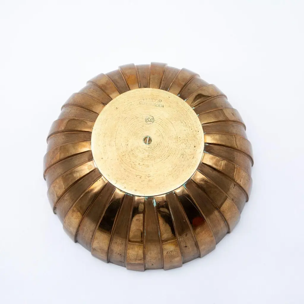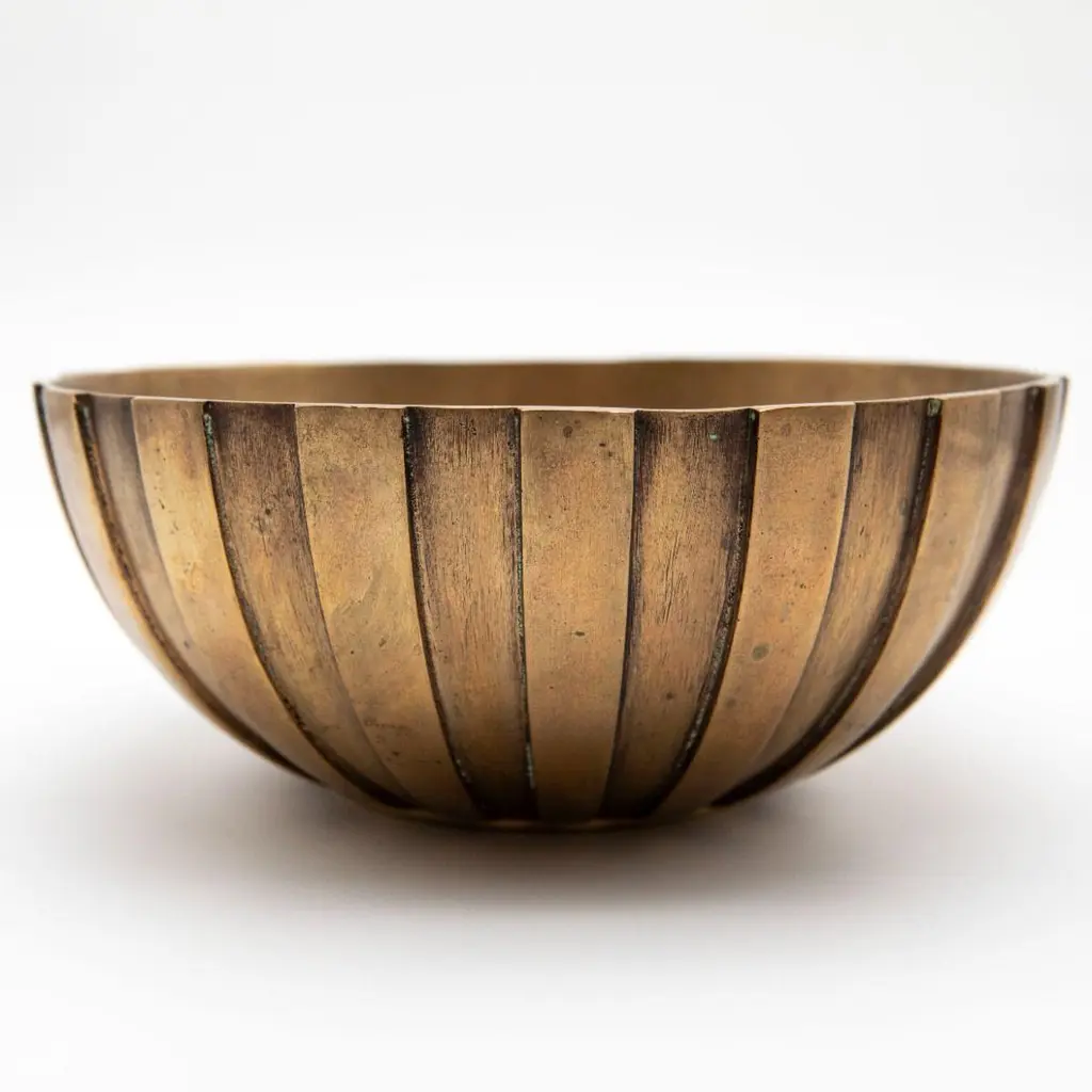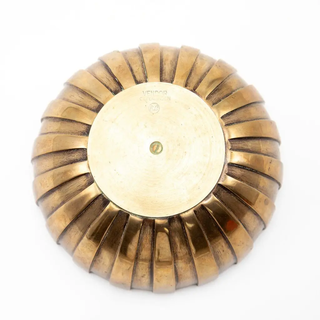 Bronze bowl designed by Emil Lauesen and produced by Vendor in Copenhagen in the mid-1940s.The bowl is decorated with vertical relief fluting, giving it a simple yet distinctive expression.It is signed with Lauesen’s monogram E.L. and stamped Vendor Copenhagen on the base.In untouched, original condition (can be polished if desired).