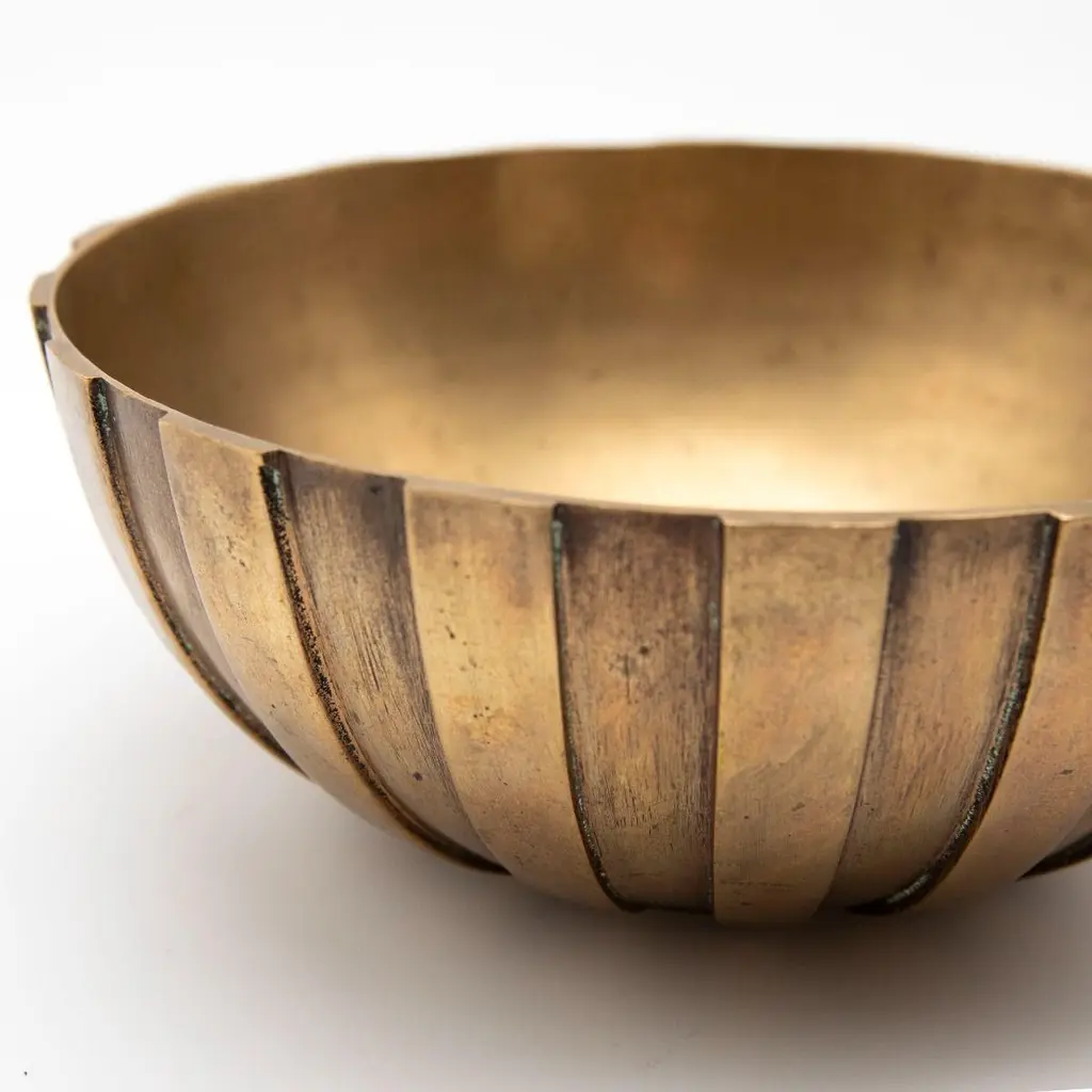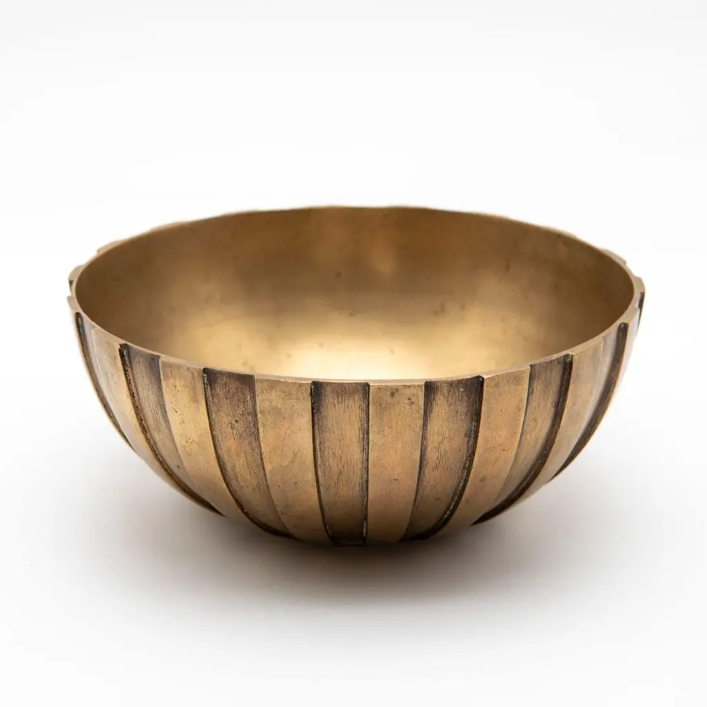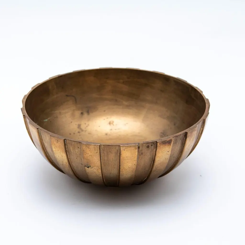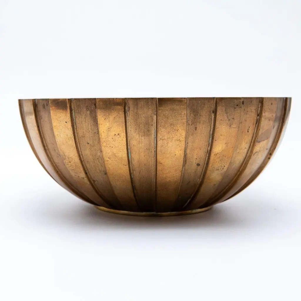 Bronze bowl designed by Emil Lauesen and produced by Vendor in Copenhagen in the mid-1940s.The bowl is decorated with vertical relief fluting, giving it a simple yet distinctive expression.It is signed with Lauesen’s monogram E.L. and stamped Vendor Copenhagen on the base.In untouched, original condition (can be polished if desired).