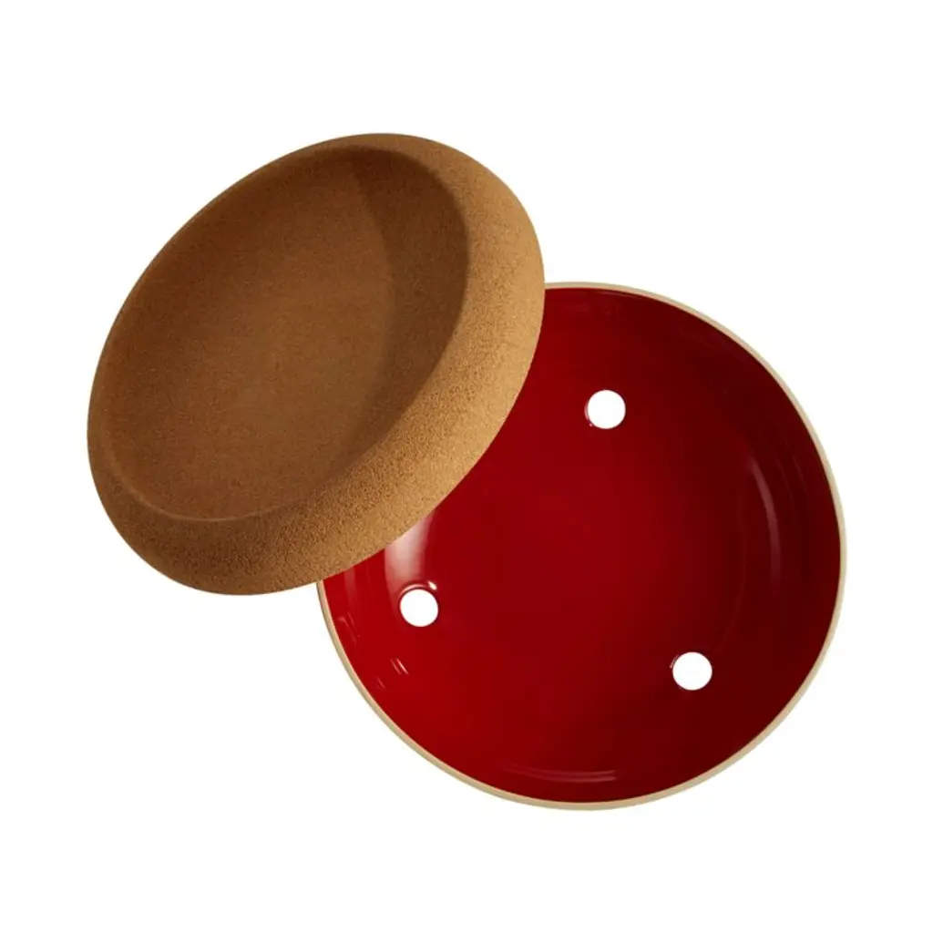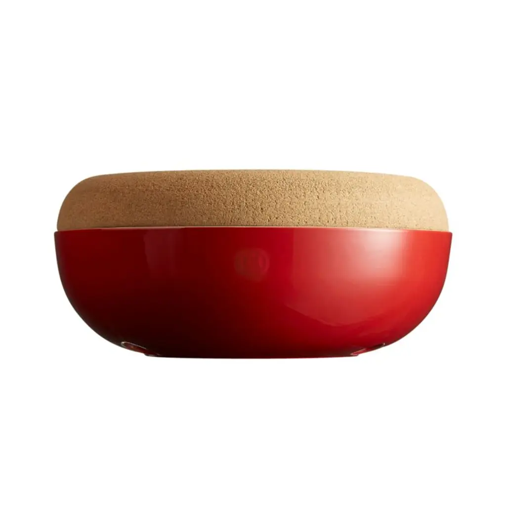 Store a variety of produce in this clever two-level storage bowl. The upper cork bowl holds fresh fruit that's ready to eat. Crafted of clay from the Burgundy region of France glazed deep red, the ceramic bowl below offers the perfect dark, insulated environment for storing root vegetables and ripening fruit. With holes that allow air to circulate, the lower bowl serves as a miniature root cellar. We love the look of this modern mixed-materials bowl on a countertop or table.Made in France since 1850, Emile Henry ceramics embrace modern technology to deliver products that can withstand all oven cooking temperatures, absorbing, distributing and retaining heat evenly.