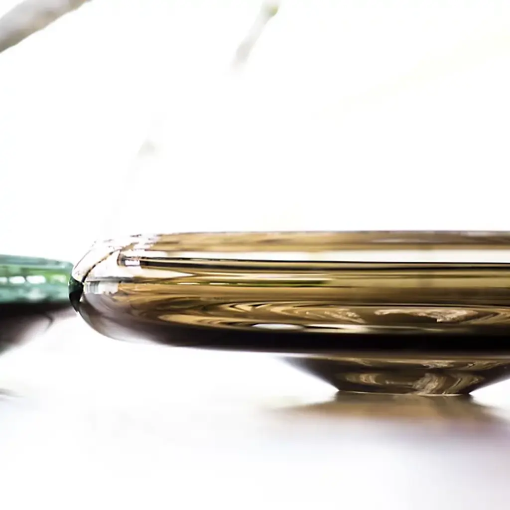 Hand-blown in the Czech Republic. By Sklo. Highlighting its handmade origins, the Expand Bowl is organically shaped in exquisite color. Slightly raised, each piece features off-center, narrow feet that are ground flat and polished smooth. Crafted from Czech glass, the Expand Bowl is a beautiful centerpiece or objet d'art.