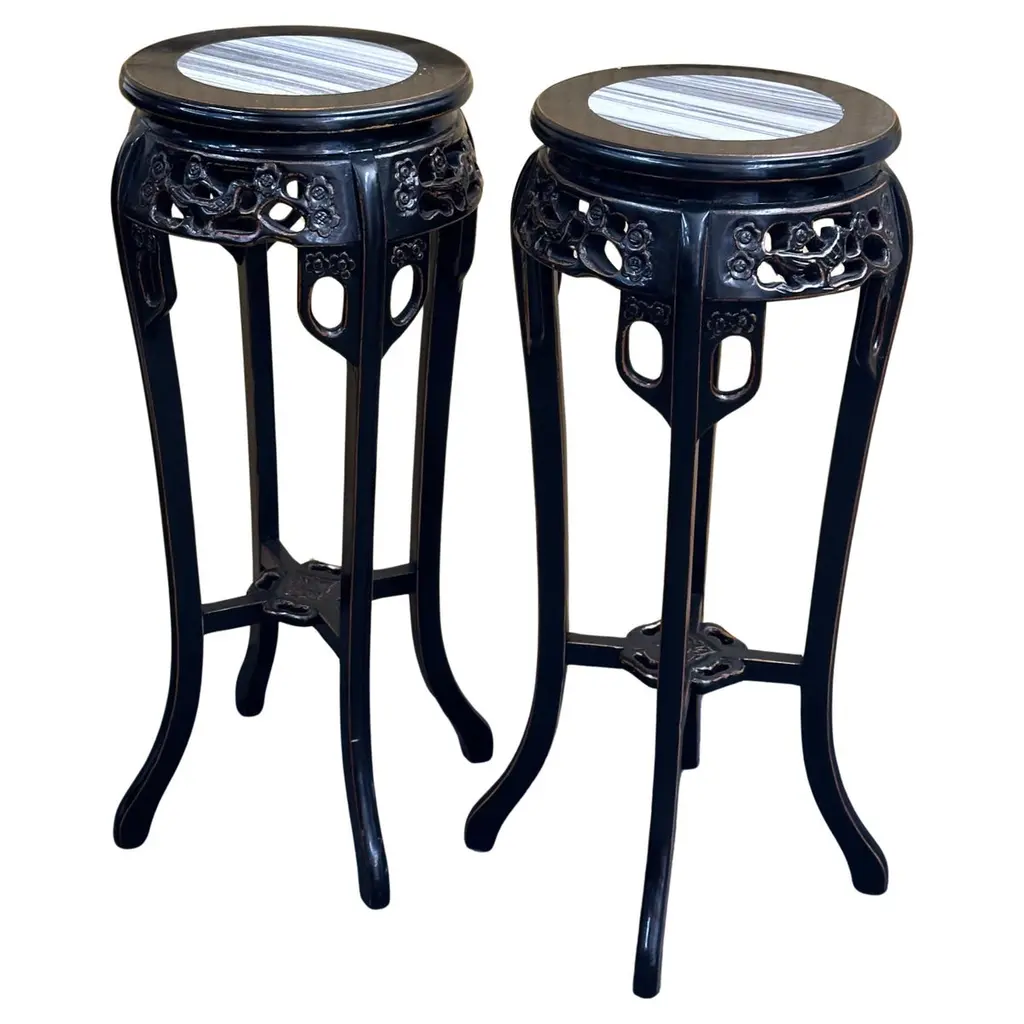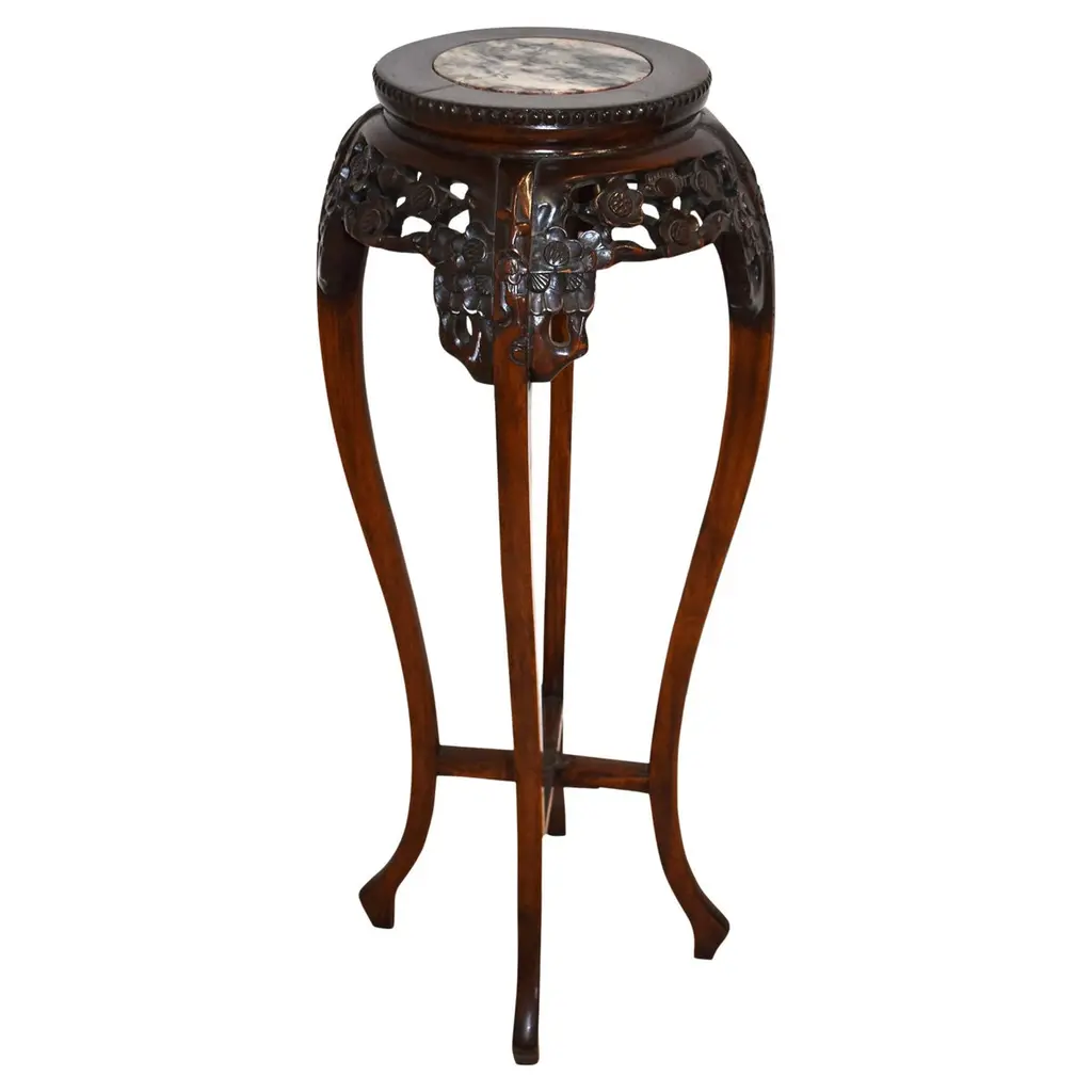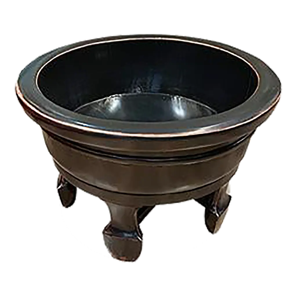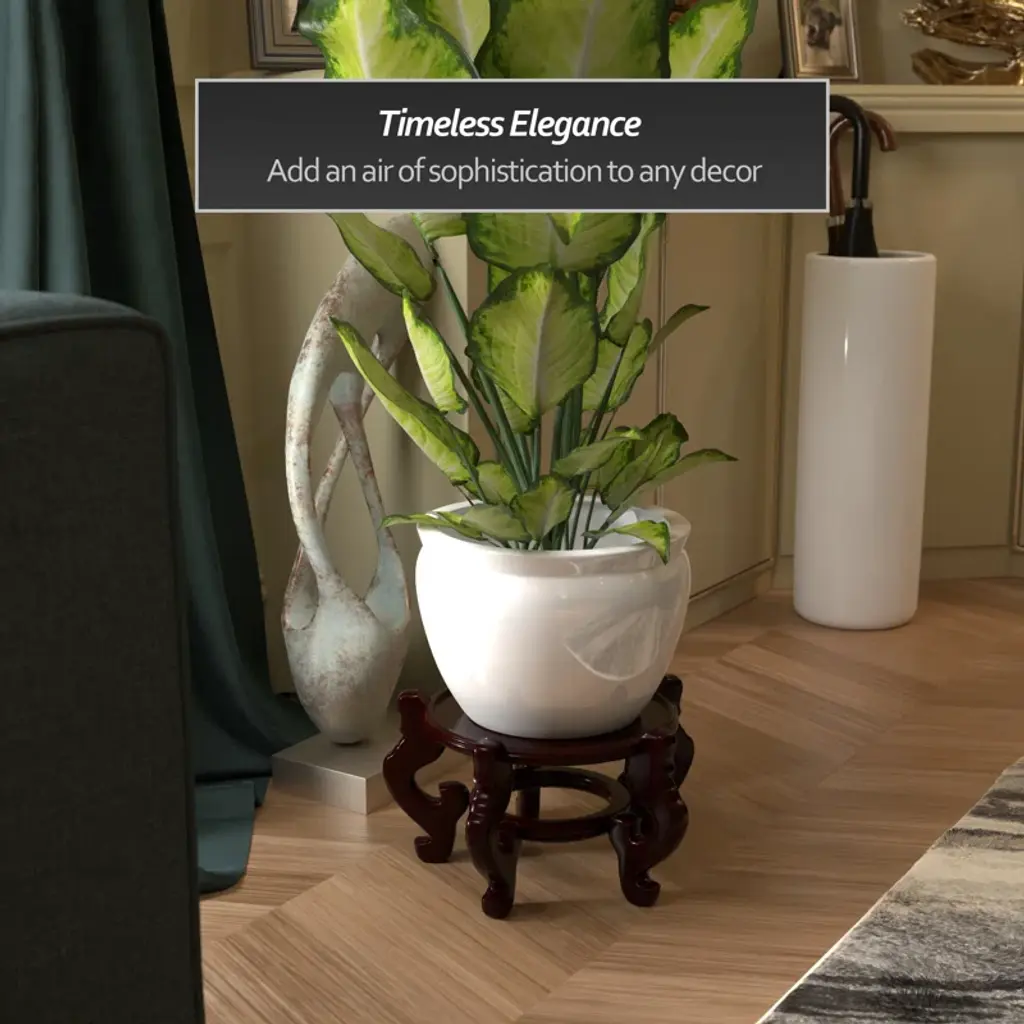 This wood vase stand offers a vintage-inspired way to elevate your home decor. Crafted from paulownia mahogany wood and hand-painted in a deep mahogany hue, it features detailed carvings that add a touch of elegance. Its five-leg design, reinforced by a center ring, provides stable support for your vases or urns. Handcrafted with care, this stand is ready to use immediately. Whether in the living room or entryway, it adds a refined touch to your space.