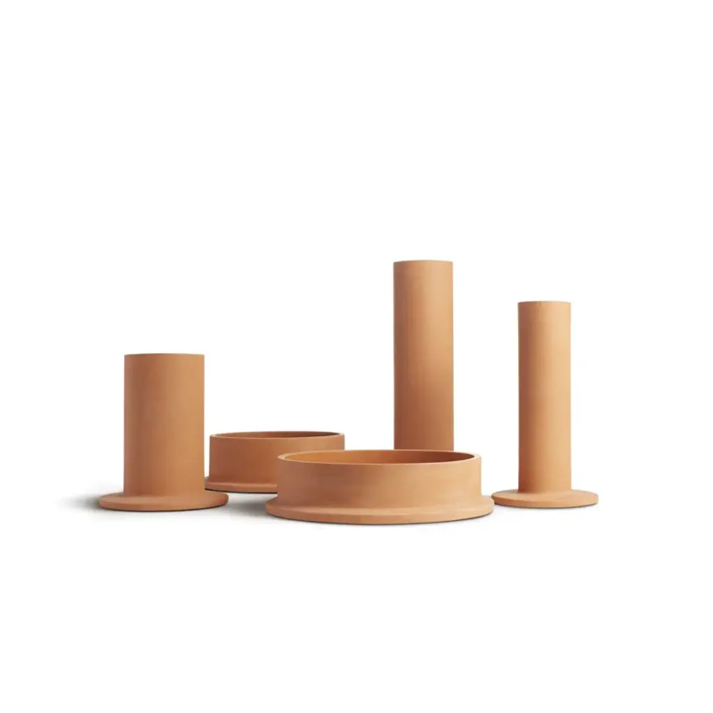 Inspired by architectural forms, this collection reinterprets the warmth and tactical appeal of terracotta in a decidedly modern way. As captivating empty, as they are filled, this collection is fit for cacti or yarn balls, but not intended for culinary pursuits.