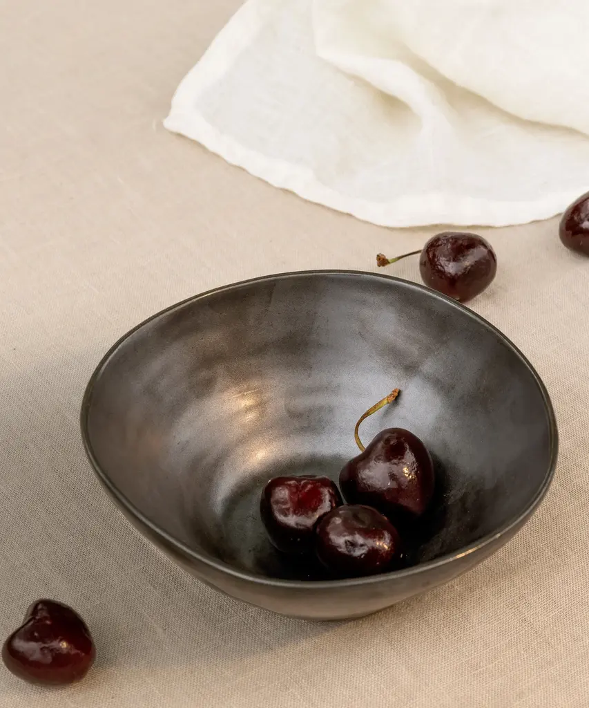 Flow is a series of perfectly imperfect tableware made to modern sensibilities using traditional craftsmanship techniques. All the items are detailed with a semi-matte glaze for a unique expression. This small bowl is as perfect for serving snacks or desserts, as it is used as a catch-all on a desk or dressing table for small items such as keys or jewelry. This versatile medium bowl is as perfect for serving up cereals or salads, as it is used as a decorative bowl or catch-all for everyday clutter. This large, versatile bowl with an artfully uneven rim is perfect for serving salads, soups, or snacks. Produced by the Copenhagen-based studio Ferm Living.