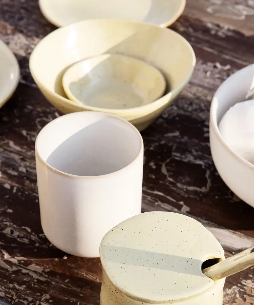 Flow is a series of perfectly imperfect tableware made to modern sensibilities using traditional craftsmanship techniques. All the items are detailed with a semi-matte glaze for a unique expression. This small bowl is as perfect for serving snacks or desserts, as it is used as a catch-all on a desk or dressing table for small items such as keys or jewelry. This versatile medium bowl is as perfect for serving up cereals or salads, as it is used as a decorative bowl or catch-all for everyday clutter. This large, versatile bowl with an artfully uneven rim is perfect for serving salads, soups, or snacks. Produced by the Copenhagen-based studio Ferm Living.