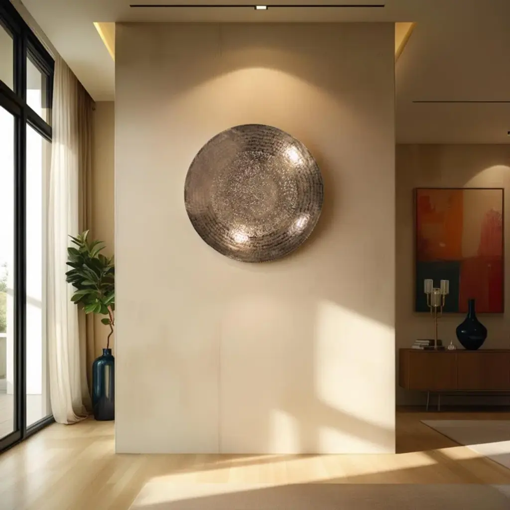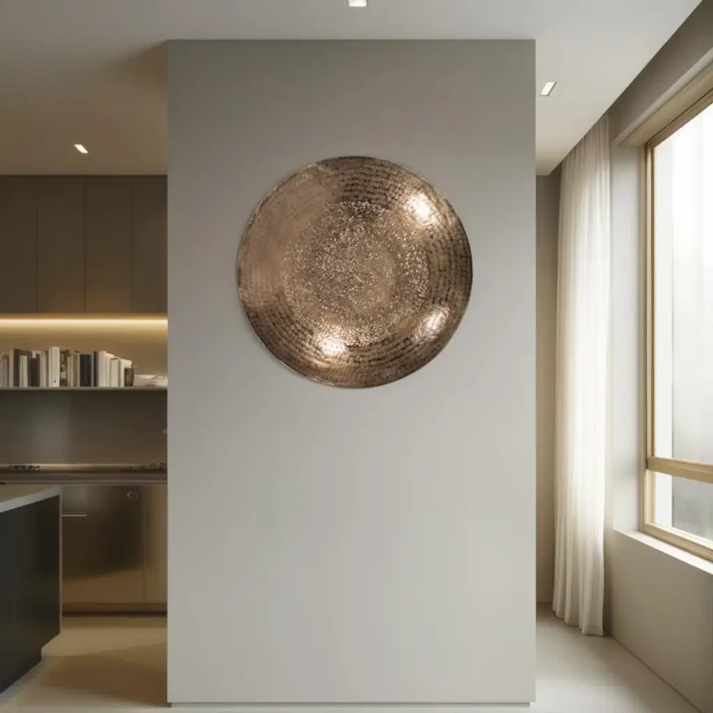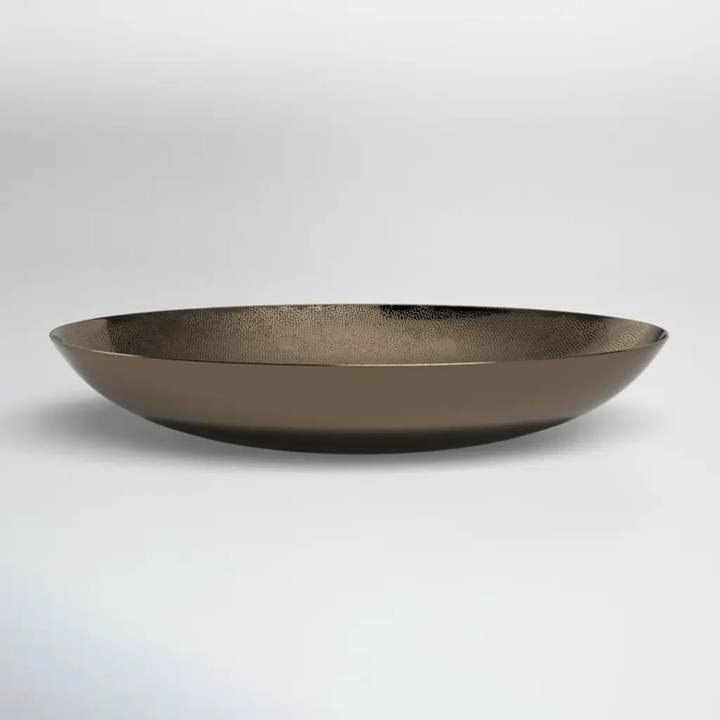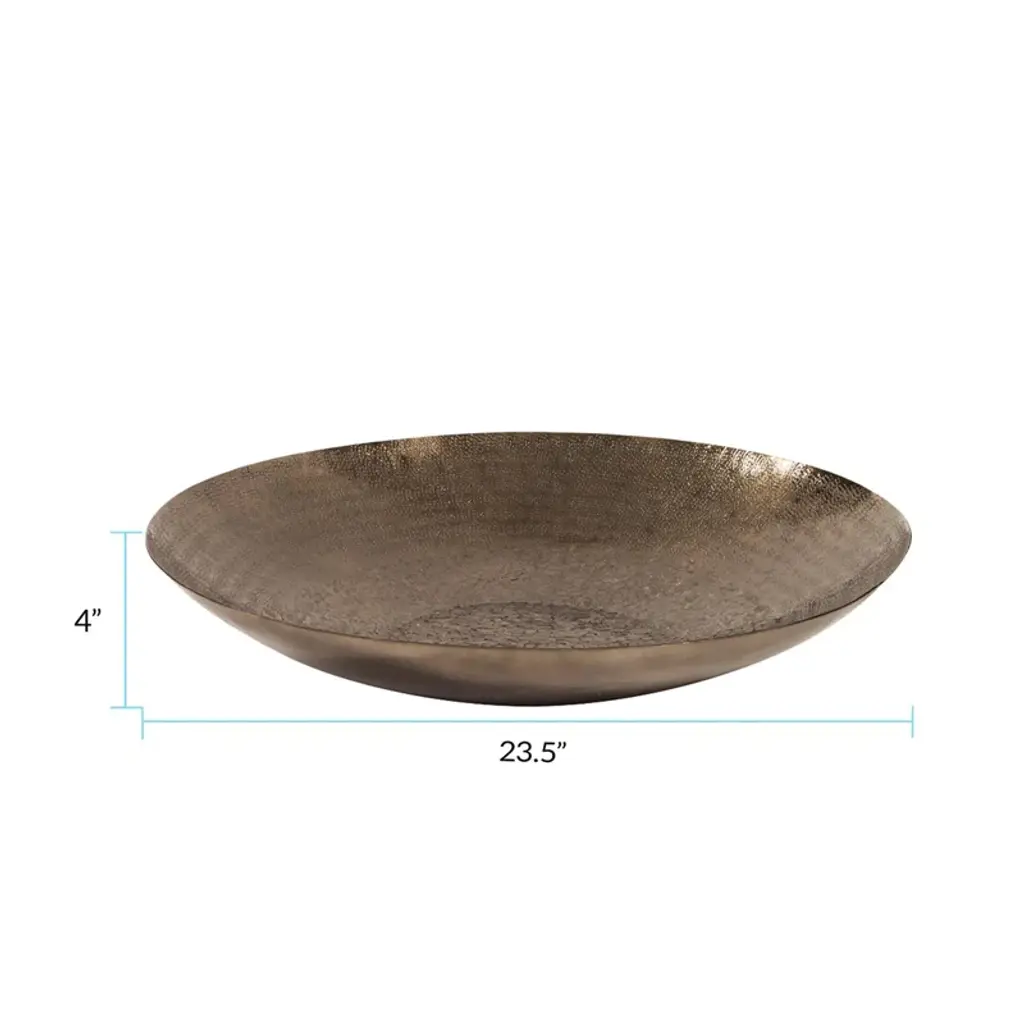 This aluminum decorative bowl offers a stylish way to enhance your decor with its round shape and intricate chiseled texture. Its metallic hue and shining finish add a luxe look, making it a standout piece on any surface. We love that it also comes with hanging hardware, allowing it to double as a sculptural wall art piece. Whether you place it on a console table or hang it on the wall, this bowl is a versatile addition to your home. Hand washing is recommended.