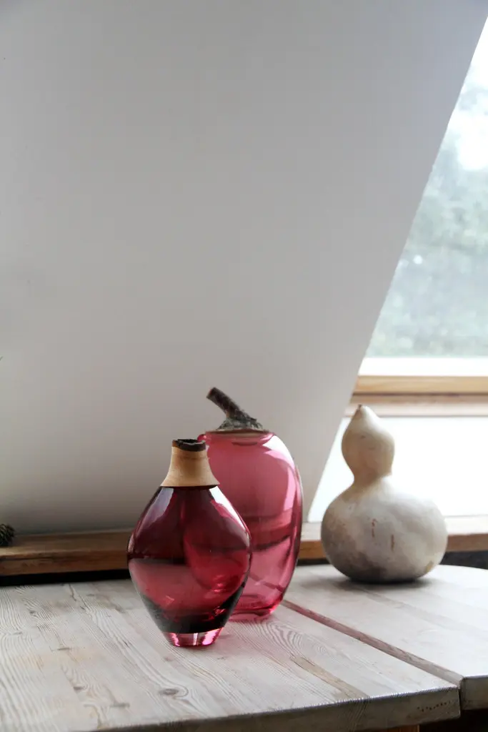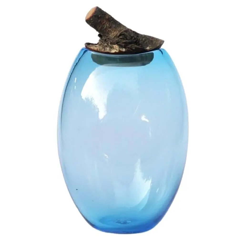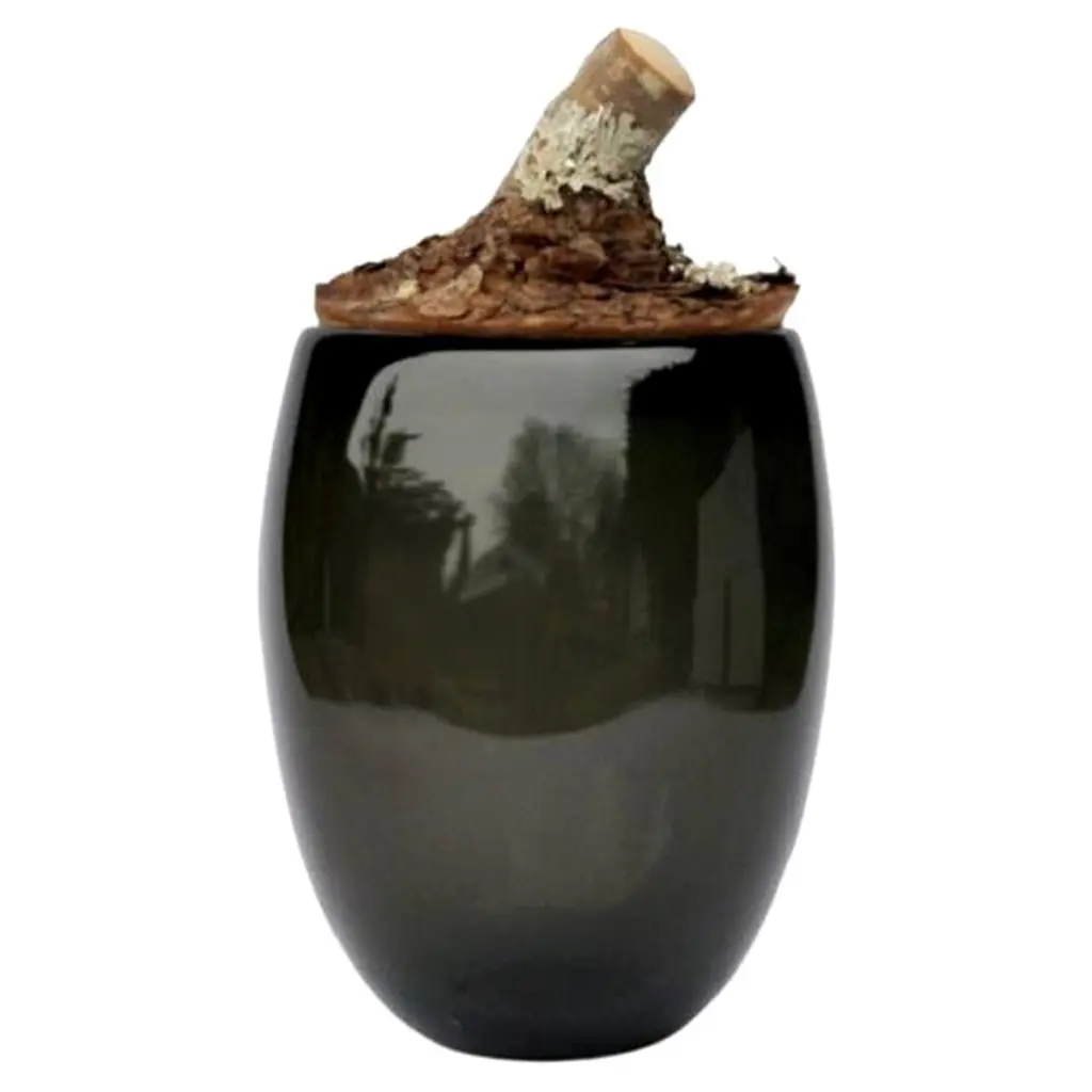 Forest green branch bowl, Pia WüstenbergDimensions: D 16-18 x H 25Materials: glass, woodAvailable in other colors.A playful jar, with a lid made from a branch stub following the curvature of the glass. Branch Bowls are blown without a mould: their outer rim is originally the inside of the glass bubble, thus their round and soft edges, characteristic of this artistic process.Handmade in Europe: freehand blown glass (England), wood (Finland).The materials then come to our warehouse in North Germany where they are fitted and assembled.Pia Wüstenberg, UtopiaPia Wüstenberg is a creative with a passion for materials and craft. She graduated from the Royal College of Arts Design Products course in 2011 and was running her own freelance studio in East London till summer 2017. After this her studio relocated to rural North Germany, allowing better access to the European crafts and more time to dream. Pia is a freelance designer at Utopia and utility and owner of the brand (which involves everything from heavy lifting to drawing up new ideas).
