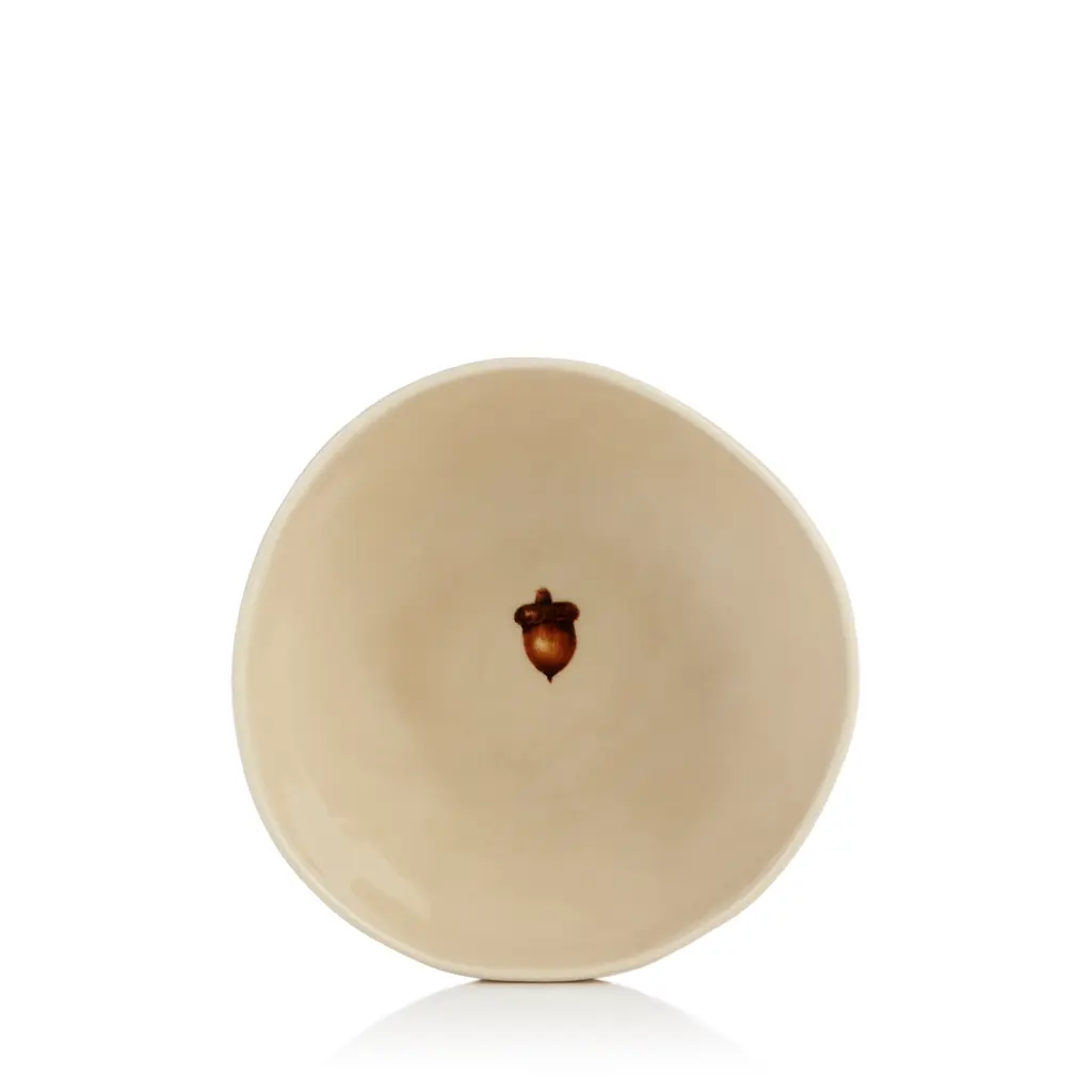 Encircled by a wreath of interwoven twigs, berries and wispy feathers, this bowl evokes the charming look of an enchanting picnic.