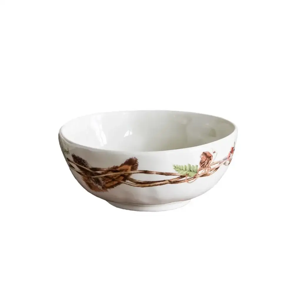 From our Forest Walk Collection - Encircled by a wreath of interwoven twigs, berries, and wispy feathers, the organic loveliness of this bowl may induce you to hit the hedgerows and return victorious with inky juice-stained fingertips and armfuls of blackberries - a taste of the season in a bowl. Based in Connecticut, Juliska is committed to bringing elegant European design into our modern homes. Since its founding in 2001, when David and Capucine Gooding began by working with artisans outside of Prague to reproduce antique Bohemian glass pieces, every piece from Juliska has shared a rich heritage spanning six centuries of European design. Juliska's creations are timeless, romantic and effortlessly chic.