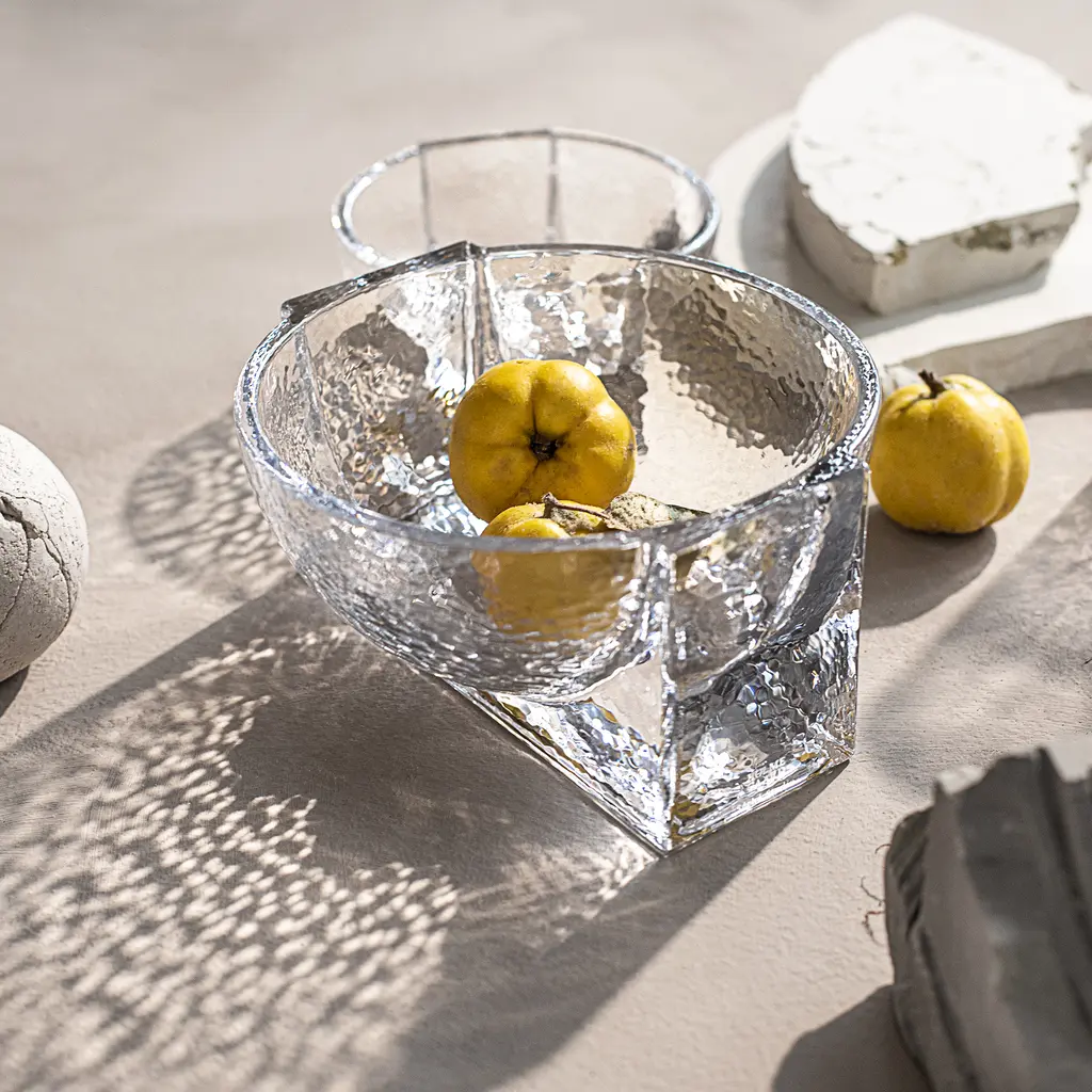 The Holmegaard Forma Textured Glass Bowl is a beautifully designed piece that combines clean geometric lines with a unique textured surface. Part of the Forma Collection by Laura Bilde, it’s crafted from pressed clear glass, showcasing a design that plays with light and texture to create an elegant visual effect. Ideal for serving fruit, displaying decorative objects, or standing on its own, this textured glass bowl is both practical and visually striking. Its versatile design makes it a perfect addition to dining tables, shelves, or any modern interior. As part of Holmegaard’s commitment to minimalist design and quality craftsmanship, the Forma Textured Glass Bowl offers a refined aesthetic that complements contemporary living spaces with ease.