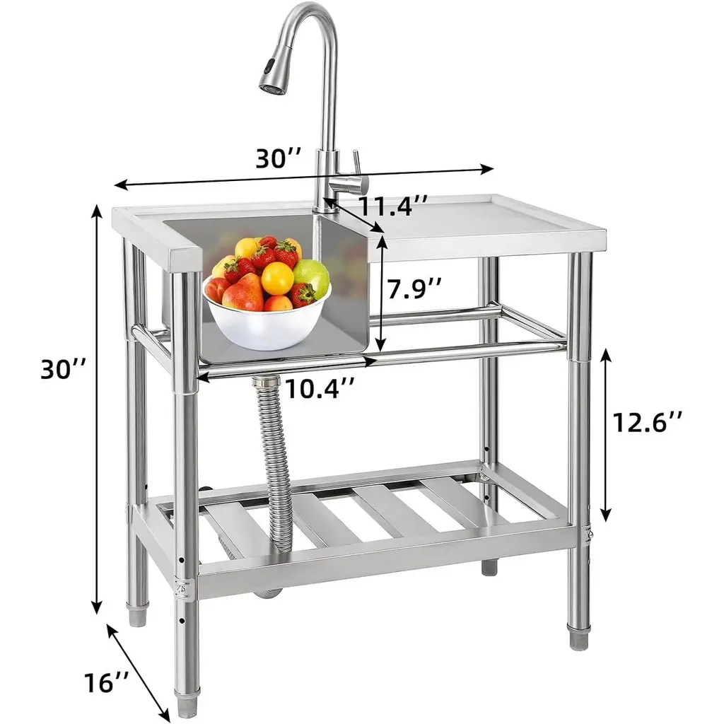 Freestanding Stainless Steel Single Bowl Sink For Garage, Kitchen - 30 X 16 X 30 Inch With Faucet