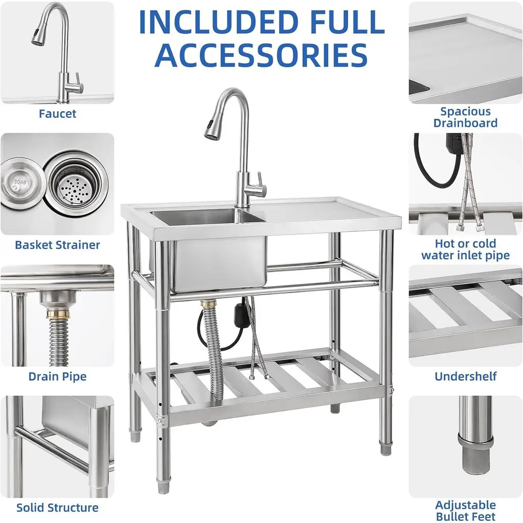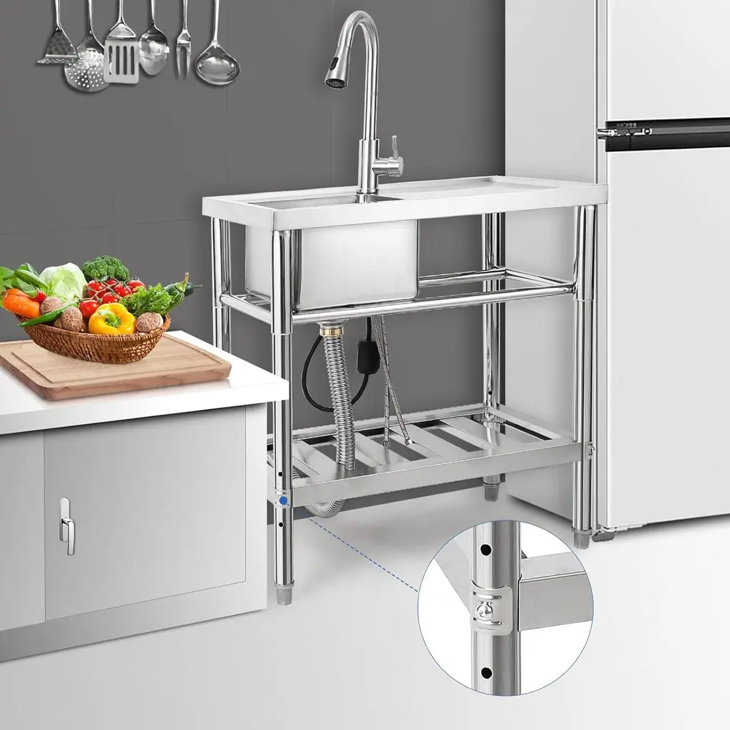 This premium stainless steel sink is designed for exceptional durability and corrosion resistance, making it ideal for various environments including kitchens, restaurants, and garages. With a multi-layer sealed drainage system, flexible faucet design, and ample workspace, it offers both practicality and convenience for food preparation and cleaning tasks. Key Features: