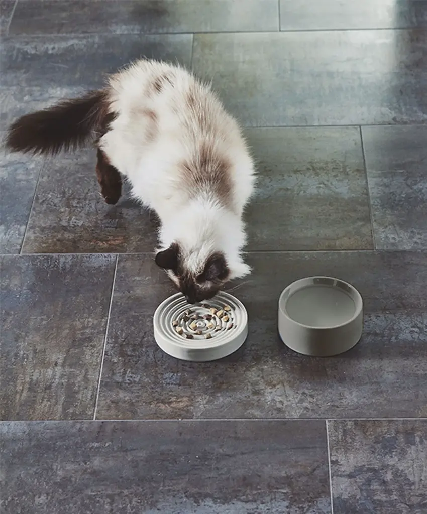 Cast from a durable, high-quality porcelain, the Fresco cat bowl adds a sophisticated look to your kitchen. The bowl is great on its own, or in combination with the matching Piatto cat bowl. The Fresco water bowl is a natural match for any modern home. The sleek design comes in a slightly darker hue than the Piatto plate to create a harmonious contrast. Designed by Dutch designer Regina Mol, Fresco is a prime example of timeless design. With three muted colors to choose from, there is no doubt that you and your cat will love these bowls. Features