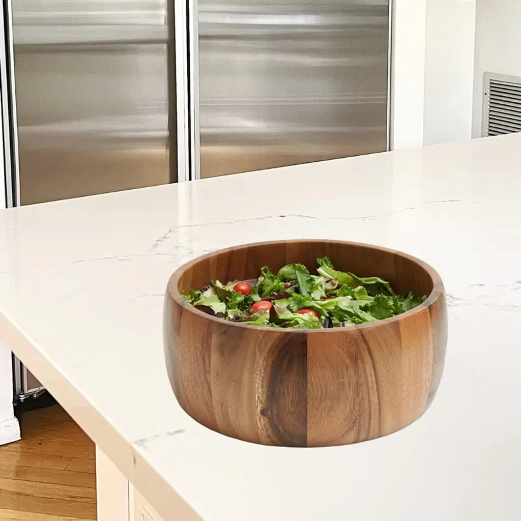The Frieling 10" Acacia Calabash Bowl is a beautifully handcrafted piece made from durable, sustainably sourced acacia wood. Inspired by the traditional Hawaiian calabash design, this bowl features smooth, rounded edges and a deep interior, making it ideal for serving salads, fruits, or snacks. Its rich, natural grain and warm tones add a touch of rustic elegance to any table setting. Measuring 10 inches in diameter, it strikes the perfect balance between functionality and aesthetic appeal, making it both a practical kitchen essential and a striking decorative piece.