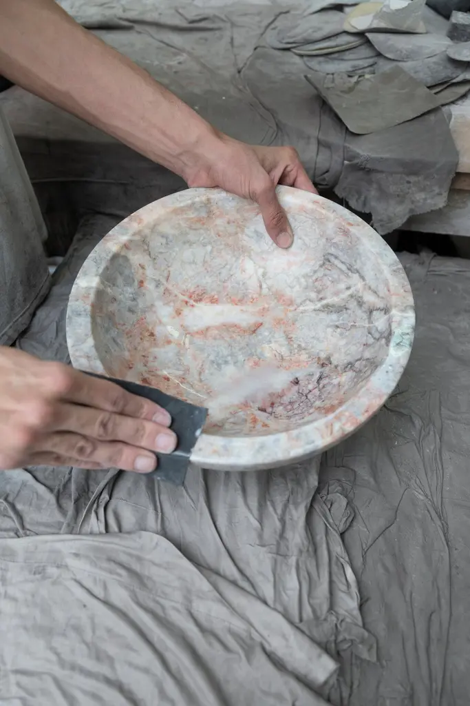 Fruit Bowl In Marble, By Karen Chekerdjian, Made In Italy