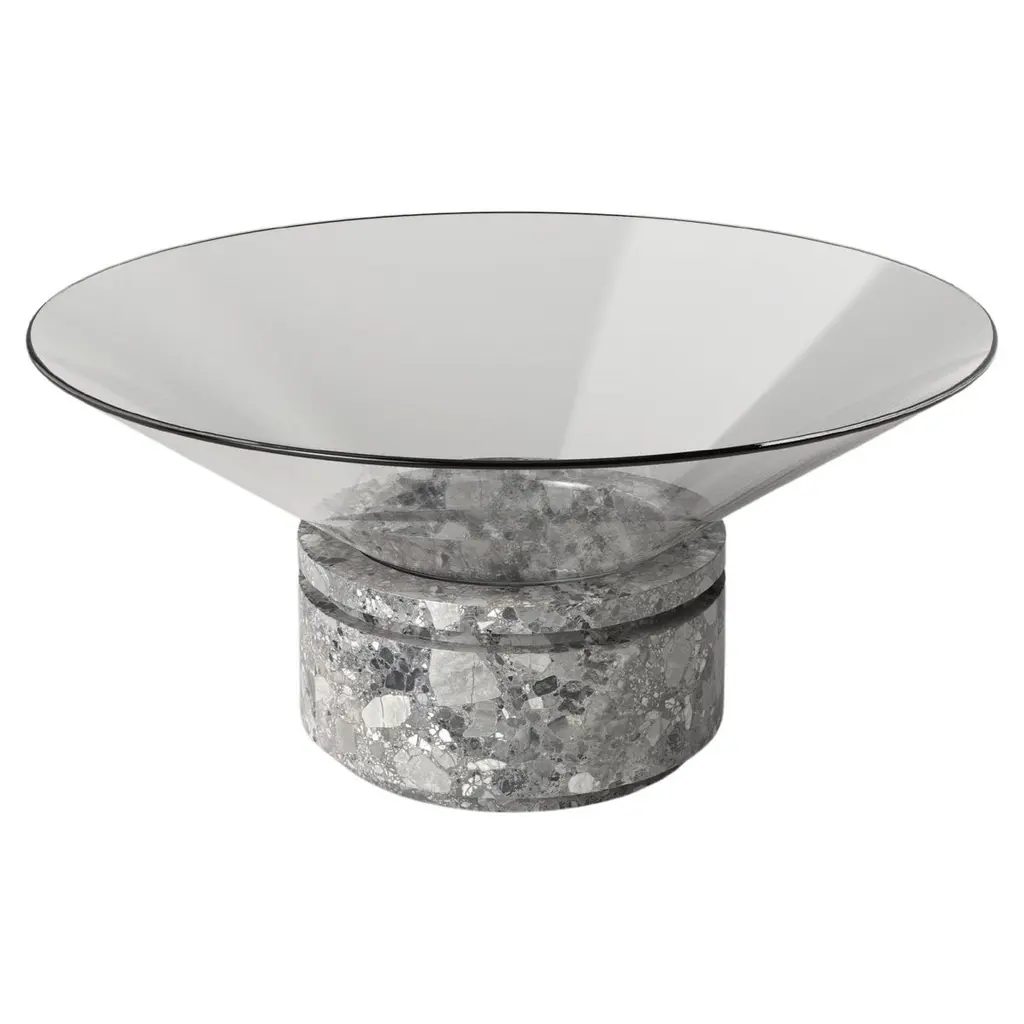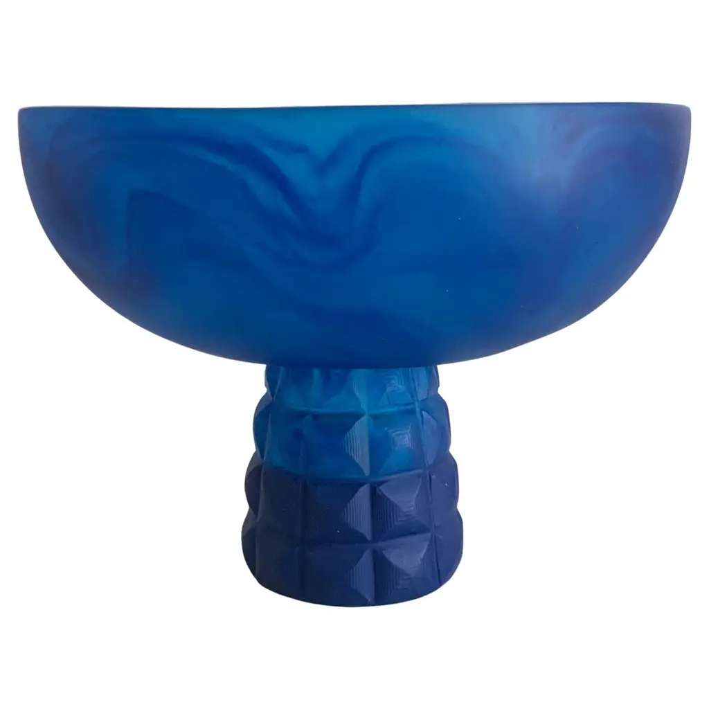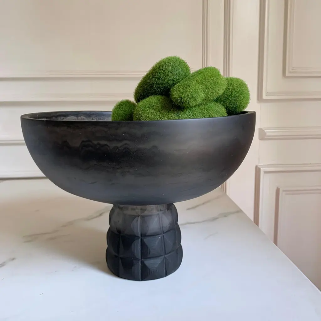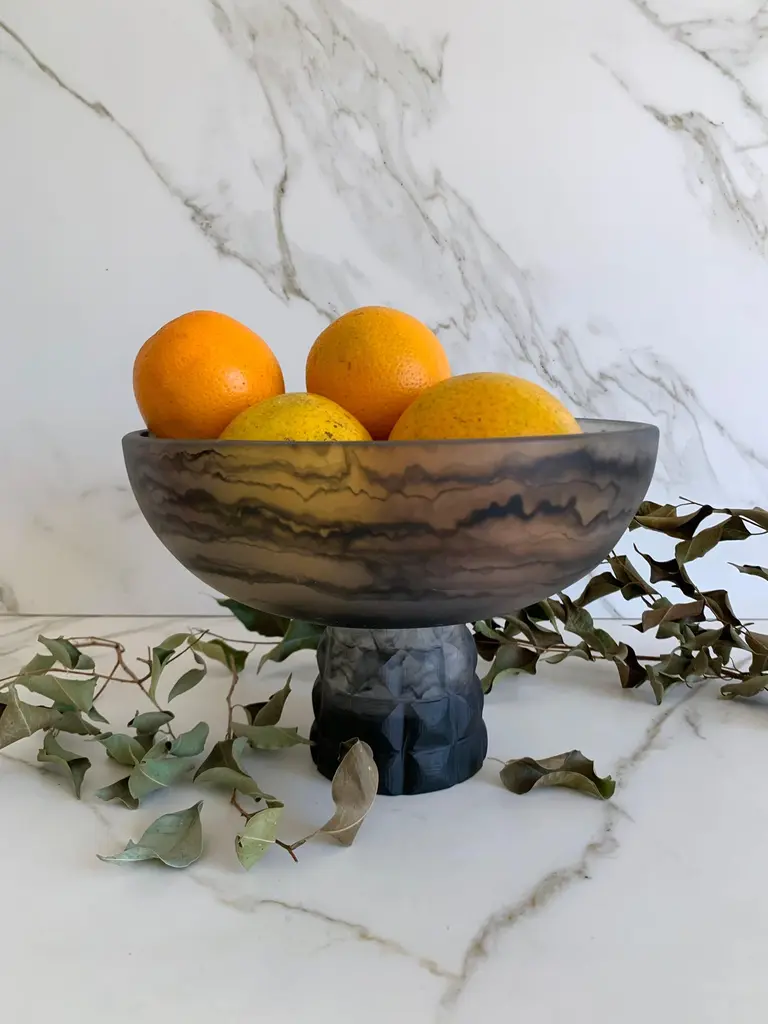 Geometric Pedestal Bowl In Smoke And Black Marbled Resin By Paola Valle