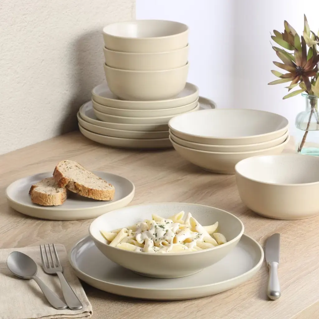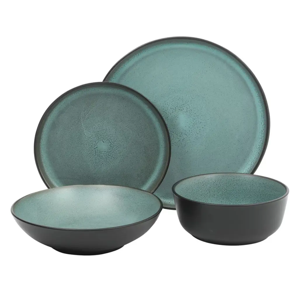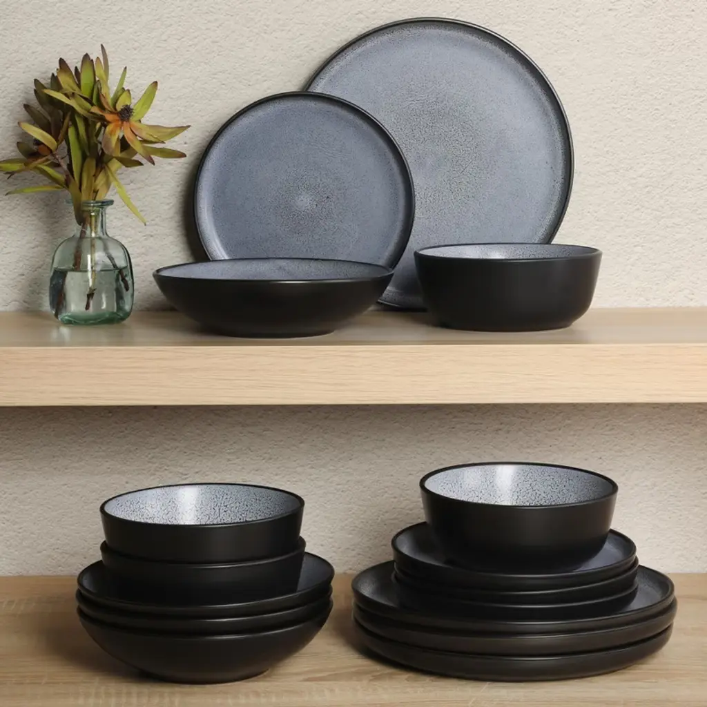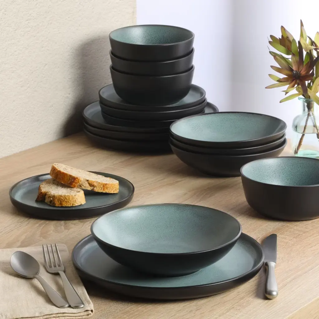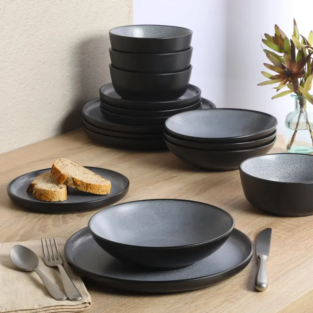The Tribeca Loft 16-piece Reactive Dinnerware Set lets you bring home a piece of New York City's infamous district and its cosmopolitan charm that has attracted locals and tourists alike. Inspired by Tribeca's post-industrial vibes and old-world cobblestone streets, these stoneware plates and bowls embody the style of both the classic and the trendy, adding a sophisticated accent to your everyday table. The durable craftsmanship of each dish is reminiscent of the neighborhood's architectural appeal, highlighted by brownstone homes and bold brick buildings with cast-iron fire escapes. A beloved hub for the arts, Tribeca serves as the perfect muse for a dinnerware set that is both artistic and artisanal. Featuring a reactive glaze technique, each piece is naturally varied, giving it a personality all its own—perfect for elevating any dining experience. The Tribeca Loft 16-piece Reactive Dinnerware Set lets your bring home a piece of New York City's infamous district and its cosmopolitan charm that has attracted locals and tourists alike. Inspired by Tribeca's post-industrial vibes and old-world cobblestone streets, these stoneware plates and bowls embody the style of both the classic and the trendy, adding a sophisticated accent to your everyday table. The durable craftsmanship of each dish is reminscent of the neighborhood's architectural appeal, highlighted by brownstone homes and bold brick buildings with cast-iron fire escapes. A beloved hub for the arts, Tribeca serves as the perfect muse for a dinnerware set that is both artistic and artisanal. Featuring a reactive glaze technique, each piece is naturally varied, giving it a personality all its own—perfect for elevating any dining experience. Share the joy of entertaining with family and friends by gifting them this timeless dinnerware collection for weddings, housewarmings, birthdays, holidays, and more. Dishwasher and microwave safe. Make every home a Gibson Home. A multi-category collection of kitchen and dining essentials, Gibson Home offers style and value for everyday living. Enjoy preparing, cooking, and serving delicious meals in a wide selection of dinnerware, cookware, bakeware, cutlery, glassware, and more. Designed with function, reliability, and versatility, Gibson Home provides dining and entertaining staple to make every mealtime or gathering a culinary success.FOUR PLACE SETTINGS: This complete set includes four 10.6-inch dinner plates, four 8-inch dessert plates, four 8.2-inch dinner bowls and four 6.4-inch cereal bowls. Suitable for a service for four and a spread filled with homemade meals and authentic conversations.EASY-TO-CLEAN DINNERWARE: Made from durable stoneware, these plates and bowls are elevated dining essentials that are best in versatility and effortless cleanup. Fired at high temperature for a wear-resistant and non-porous construction, these heavy stoneware pieces provide a sturdy look and feel for everyday use. ONE-OF-A-KIND DISH SET: The reactive glazing technique captures the artisanal look of each piece with intentional flecks and unique variations.EVERYDAY ENTREÉ BOWLS: All-purpose dinner bowls, widely known as "blates", are a mash-up of a bowl and a plate. They combine the tall edges of a bowl and the flat surface of a plate to serve pasta, salads and other dishes with sauces and soups. GIFTING WITH STYLE: Add this collection to your gift registry or gift it to family, friends, newlyweds and first-time homeowners to celebrate birthdays, weddings, special occasions or everyday milestones. CARE INSTRUCTIONS: Dishwasher and microwave safe