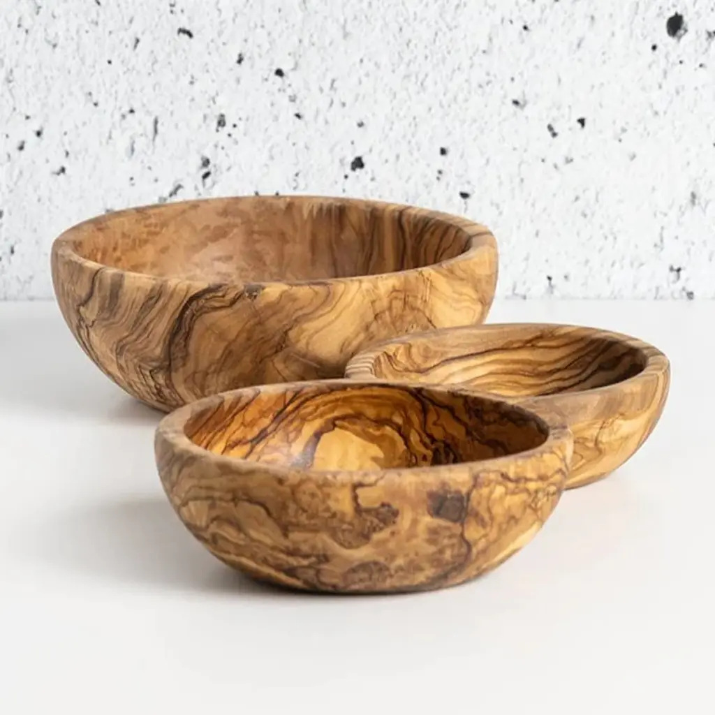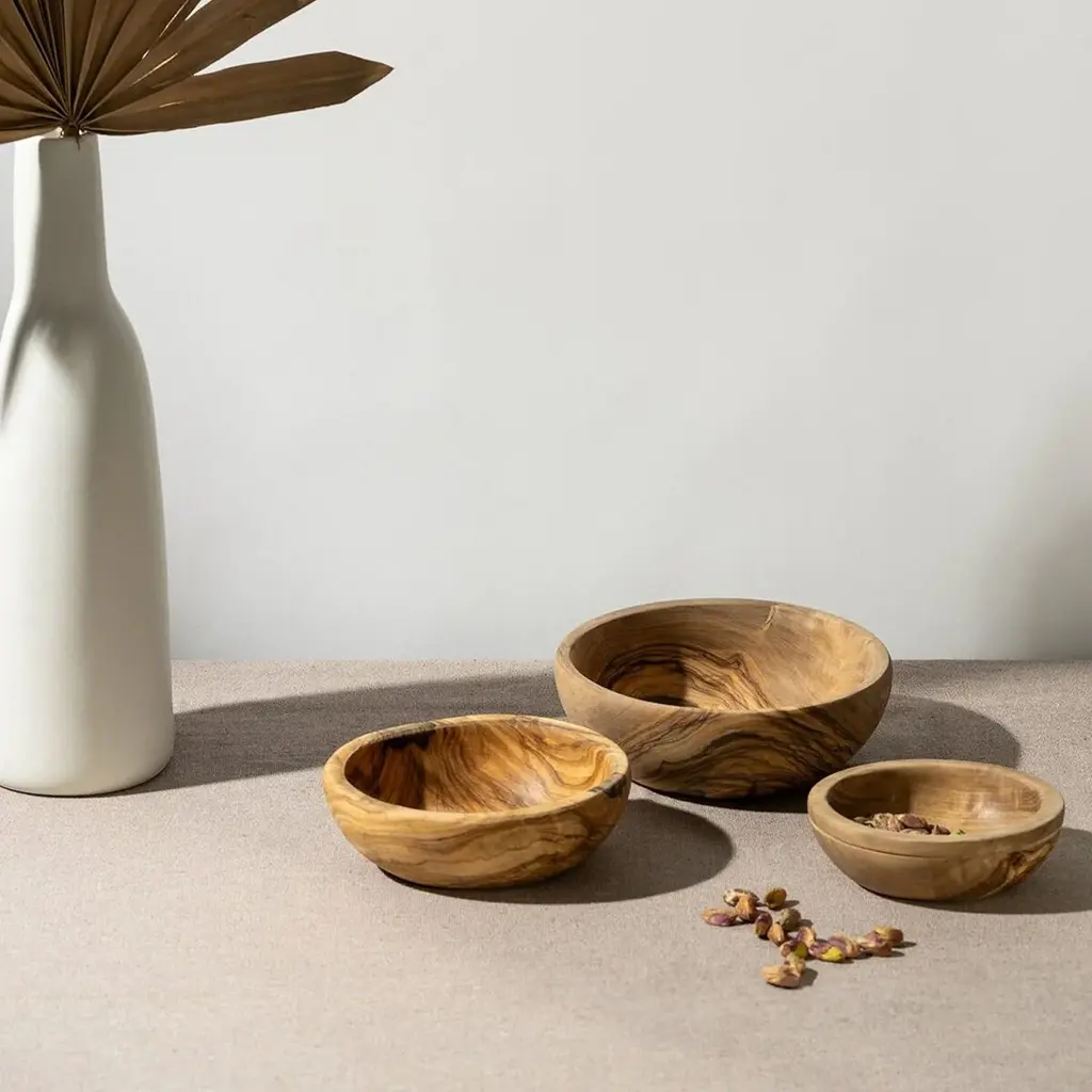 Gharyan Stoneware, S/3 Olive Wood Nesting Bowls