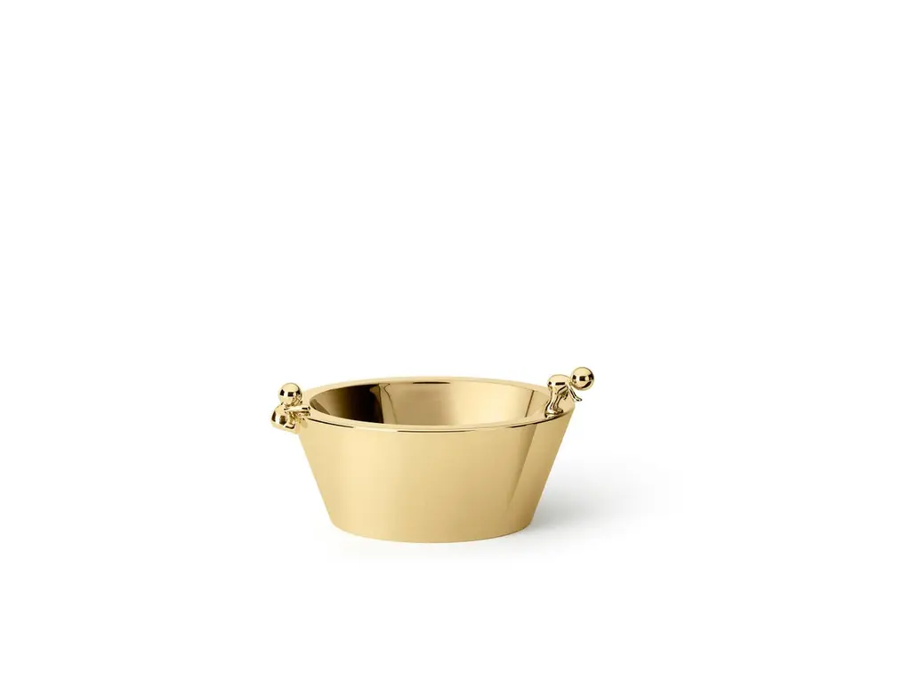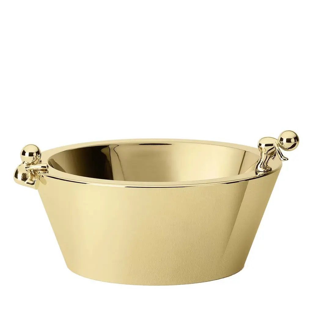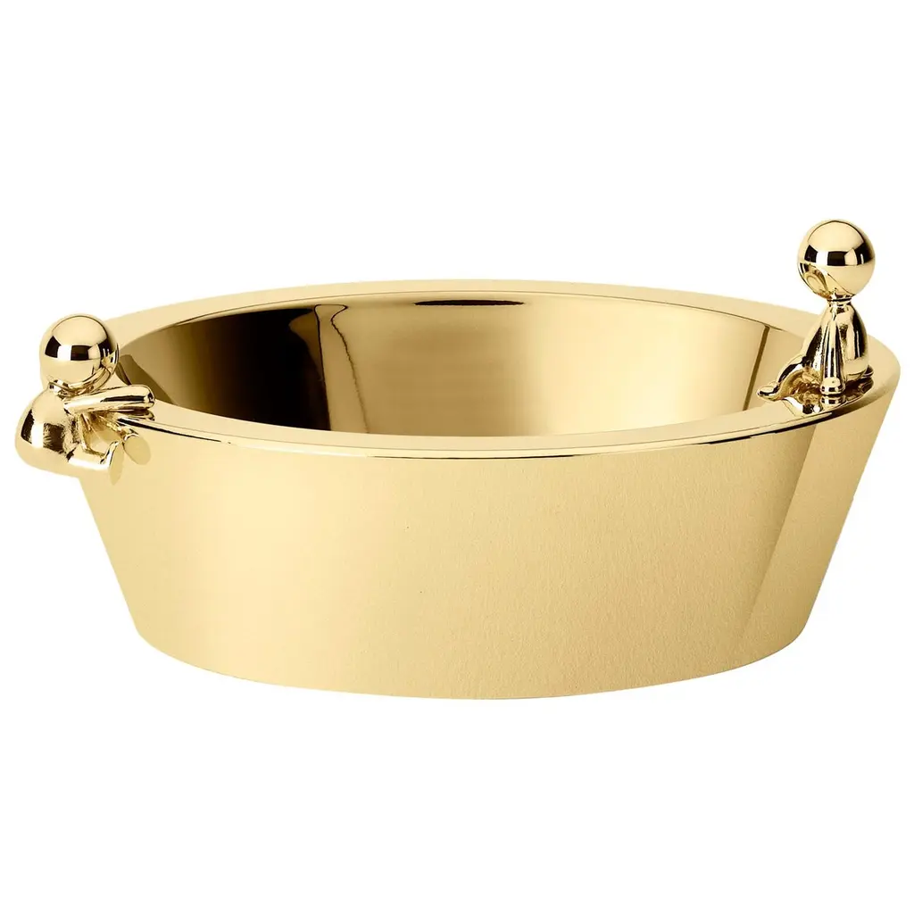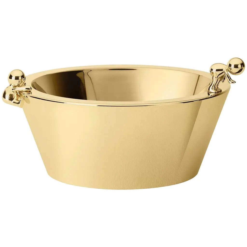 Medium bowl in stainless steelOmini is a family of products that plays on the inclusion and the relationship between the human figure with a series of monolithic objects from geometric and minimalist design. Small Lilliputians attack and animate the pure forms of objects, referring to the natural-artificial and abstract-figurative contradictions that have always characterized the relationship between man and the object.Material:Stainless steel with pvd treatment.