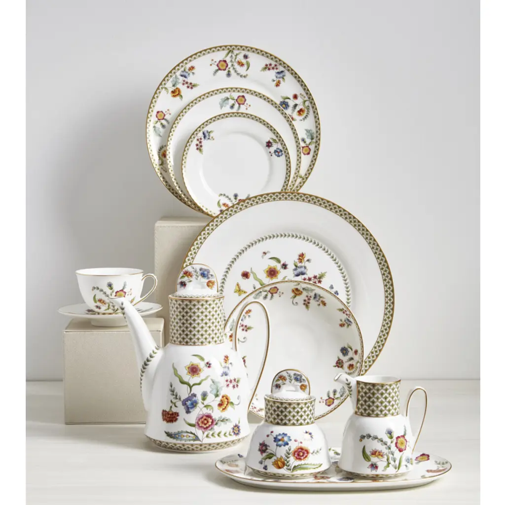 Prouna Fine Bone China specializes in creating tabletop items that combine fine English bone china with Swarovski Elements crystals, for a look that's both festive and refined. Every Prouna item is hand painted with 24kt gold or platinum. Prouna Jewelry marries the beauty of fine bone china dinnerware with the sparkle of Swarovski Crystal Elements. Sculptural white china serves as an elegant base to hand-painted designs, gold and platinum ornamentation and dazzling arrays of Swarovski crystals. With several patterns to choose from, each with its own unique story, you're sure to find one you love. The crystals are attached with a special method that is tested dishwasher safe. A true marriage of technology and style, Prouna Jewelry Dinnerware is the height of luxury.