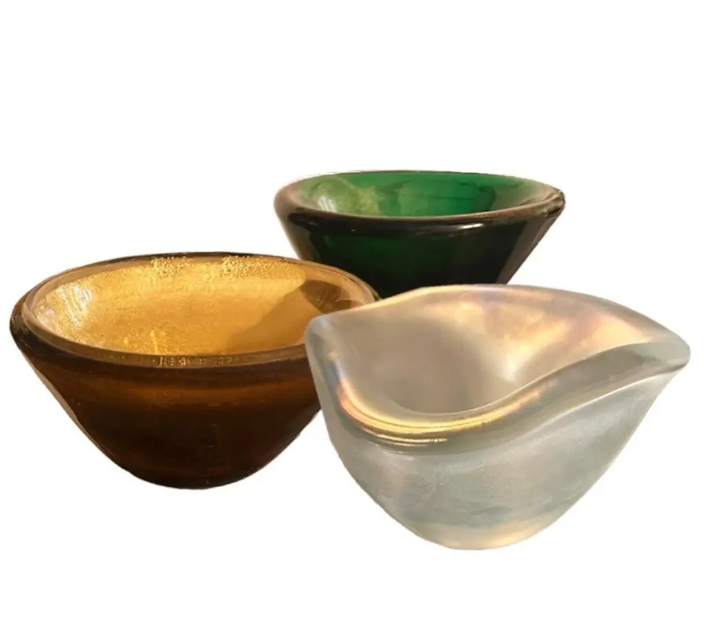 Handcrafted by skilled artisans of Murano, this glass bowl showcases the vibrant colors and craftsmanship that characterize the island's tradition of glassmaking. An exquisite iridescent gold, this bowl adds a touch of luxury to any space and makes a wonderful gift as well. Choose from various colors and shapes now available in Venfield's NYC showroom.Dimensions:Diameter: 6 inchesHeight: 3.5 inchesCondition: New