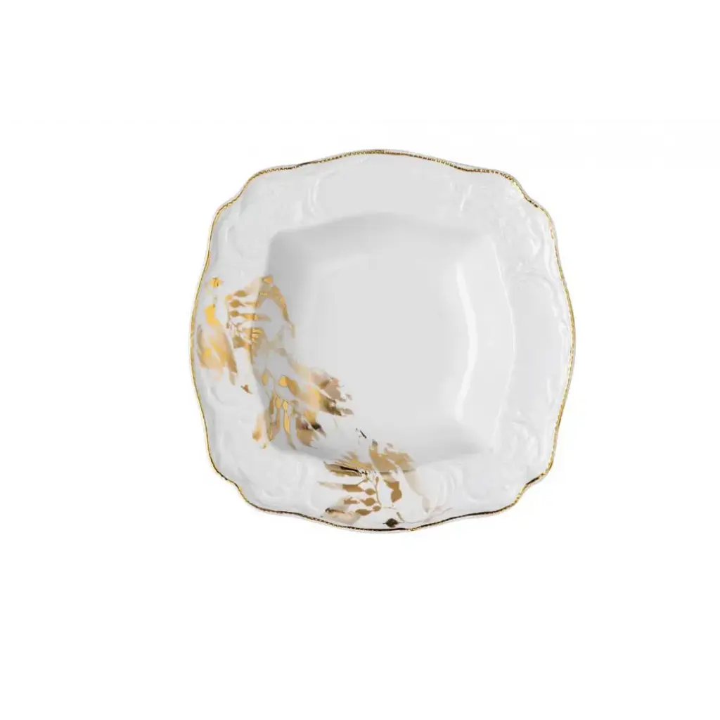 Golden Edge Scalloped Dinner Bowl 8 In D X 2 In H