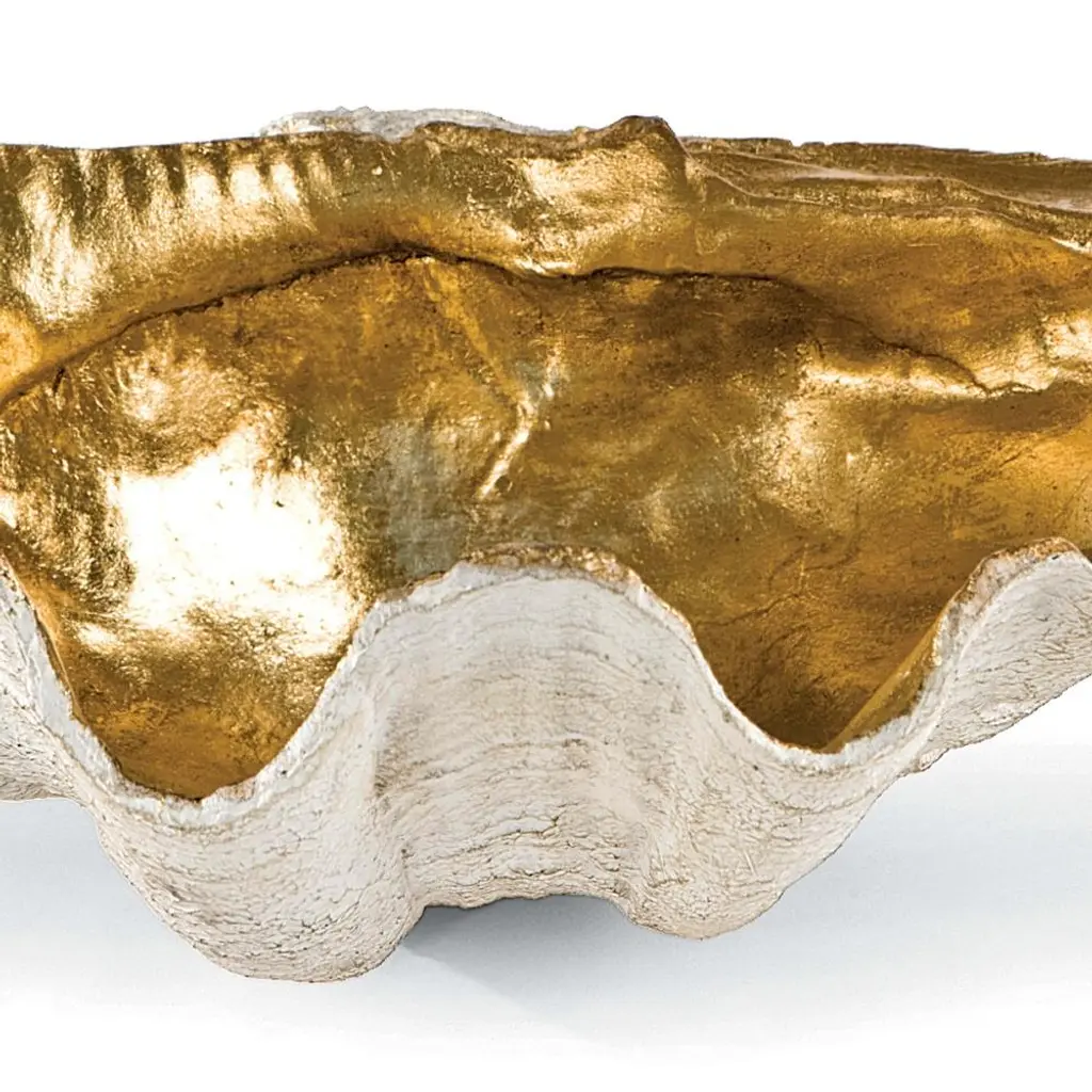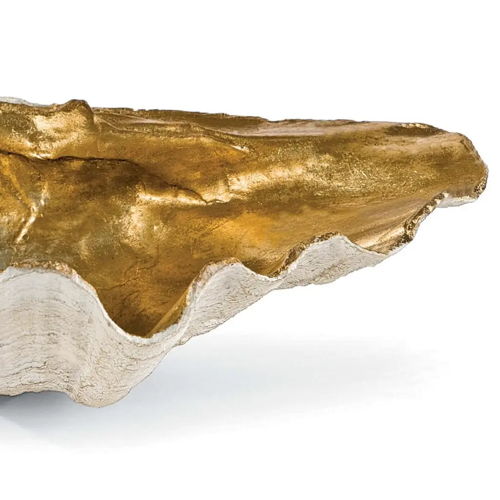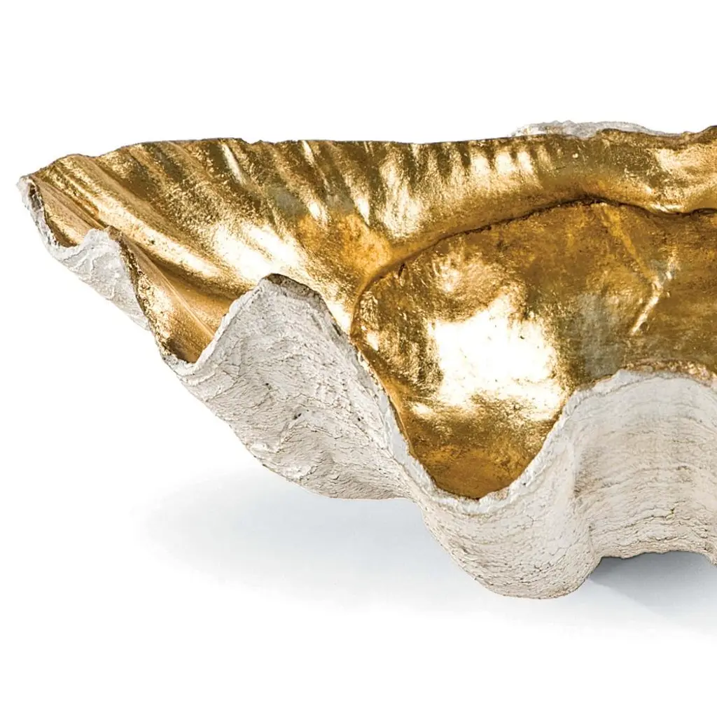 Golden Hollywood Regency Natural Resin Clam Decorative Bowl - Small
