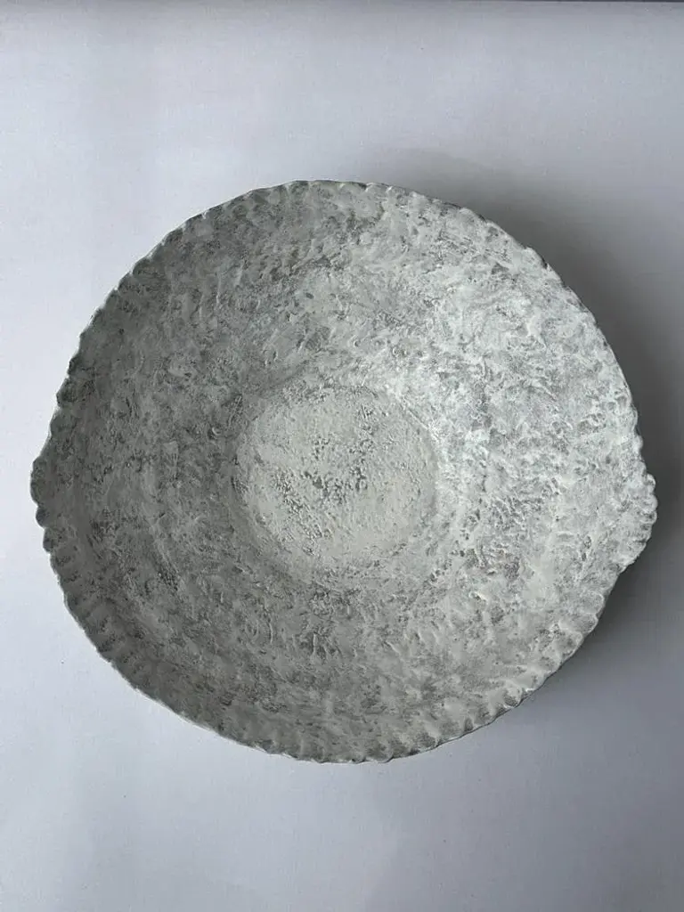 Grey Stoneware Symposio Bowl by Elena Vasilantonaki Unique Dimensions: ⌀ 34 x H 10 cm (Dimensions may vary) Materials: Stoneware
