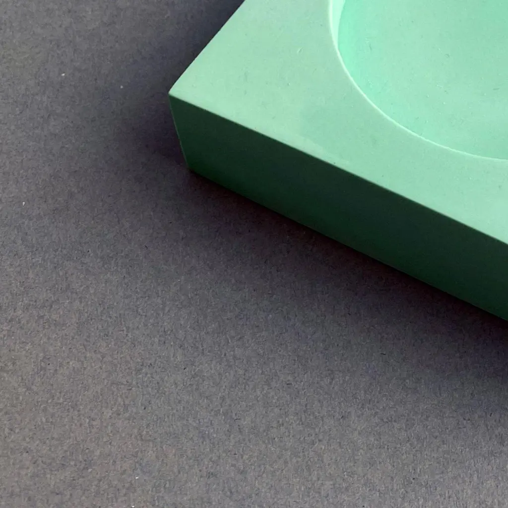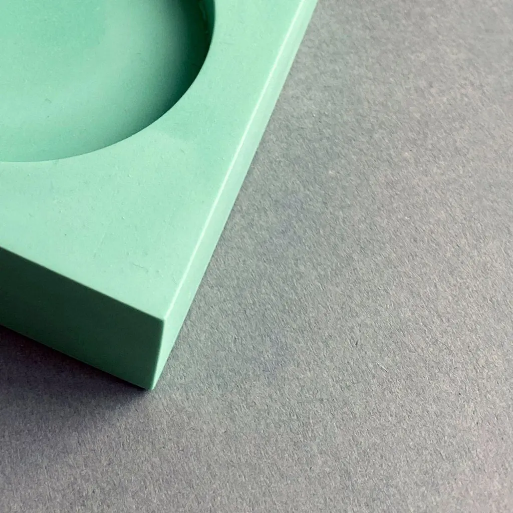 Green bowl mould project by Theodora AlfredsdottirUniqueMaterials: JesmoniteDimensions: 110 x 110 x 25 mmTheodora Alfredsdottir is a product design studio based in London. Theodora is an Icelandic product designer. She holds a bachelor’s degree in product design from the Iceland Academy of the Arts (2012) and a master’s degree in Design Products from the Royal College of Art in London (2015).Storytelling through objects; Theodora’s work revolves around the narrative an object can inhabit and exploring ways of objectifying that narrative. She's interested in the way an object can act as documentation of its manufacturing process; a record of what went on between the machine, tools, craftsman and Material as well as it can communicate its origin and former life. In short, the object creates its own factual narrative. That often leads to the discovery of unexpected qualities as well as it gives the user a subtle opportunity to reconsider our Material world and explore value in a different way..
